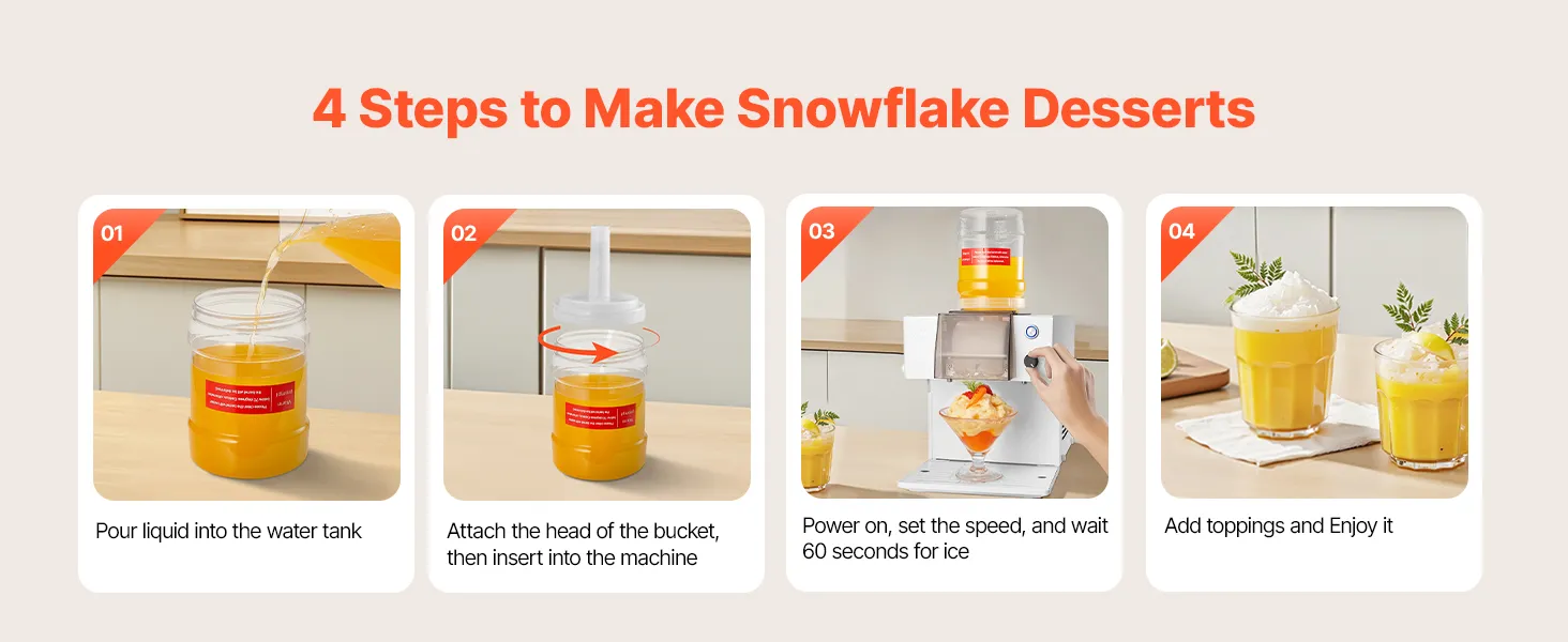 Tento výrobník ľadu v tvare snehovej vločky vám umožní jednoducho vytvárať hladké, nadýchané ľadové dezerty a nápoje v domácnosti s použitím vody, mlieka, džúsu, sódy atď., takže je ideálny na rodinné použitie, malé stretnutia alebo zábavu s priateľmi, pričom jeho kompaktný a používateľsky prívetivý dizajn zaručuje zábavnú a pohodlnú prípravu osviežujúcich pochúťok.