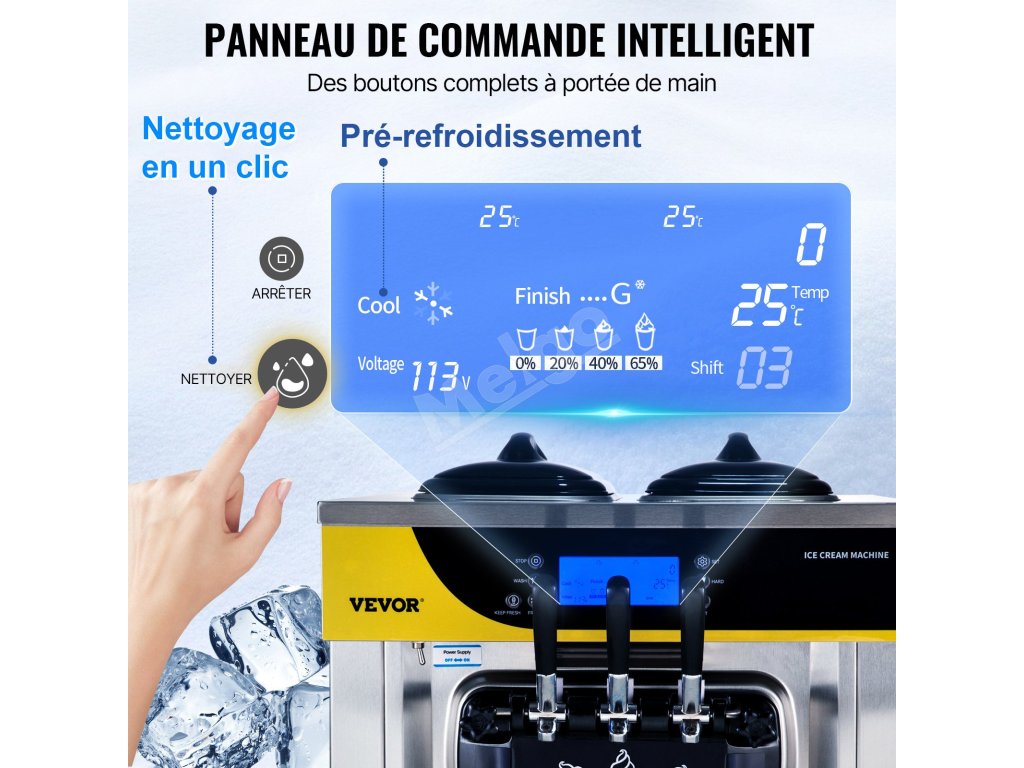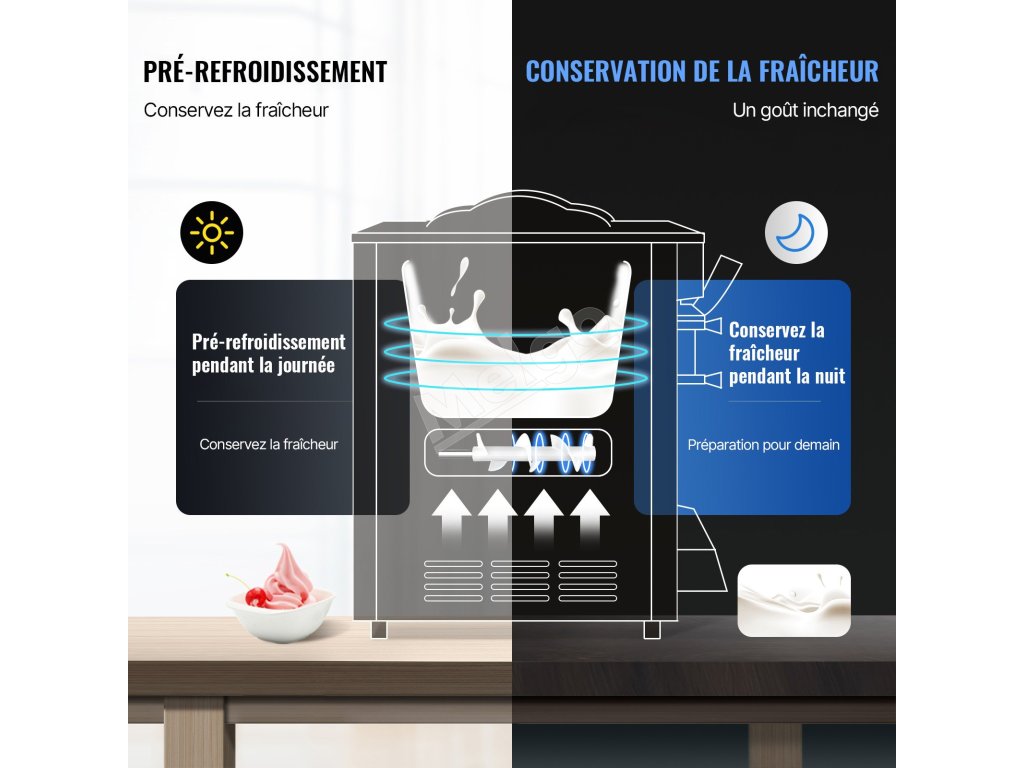 Tento komerčný stroj na výrobu zmrzliny dokáže vašim priateľom alebo zákazníkom v krátkom čase poskytnúť dostatočné množstvo mäkkej zmrzliny, krému, jogurtu, gelata a sorbetu. Má široké uplatnenie v snack baroch, kaviarňach, nápojových obchodoch, reštauráciách, pekárňach, bufetoch, reťazcoch rýchleho občerstvenia atď. a spĺňa vaše každodenné obchodné požiadavky.