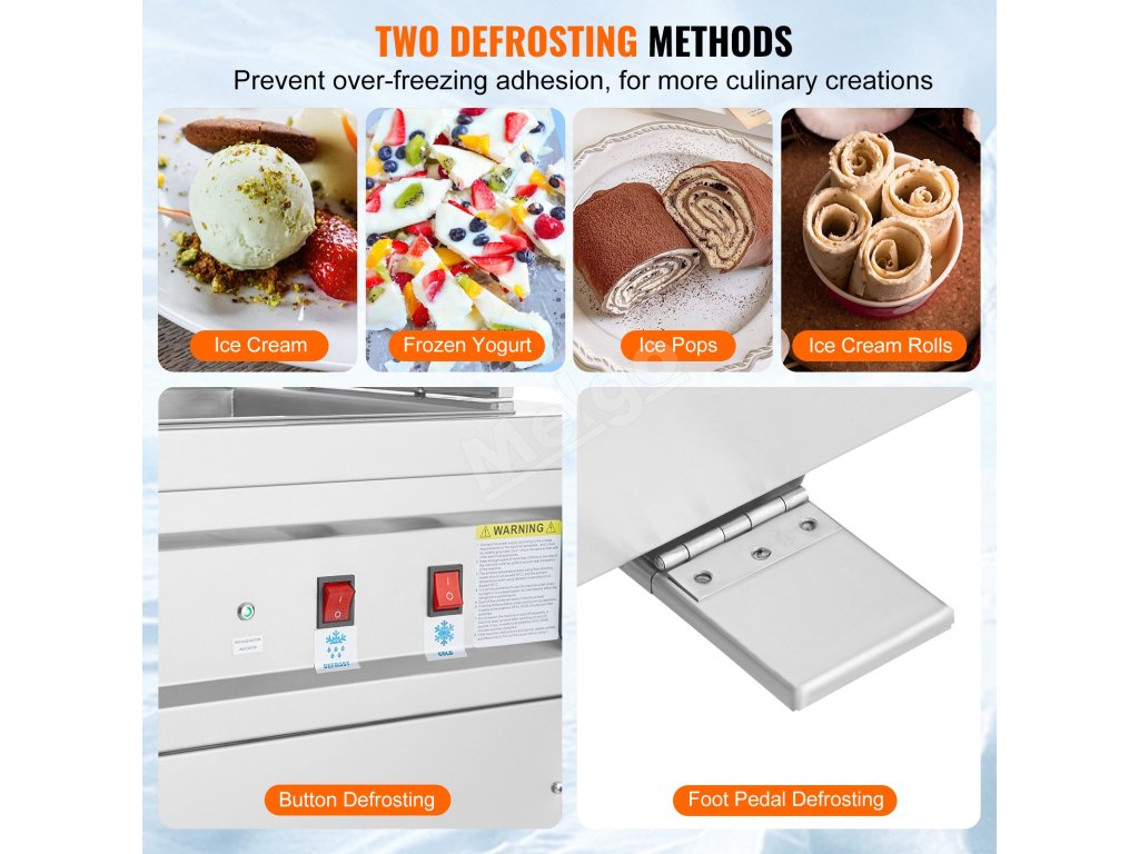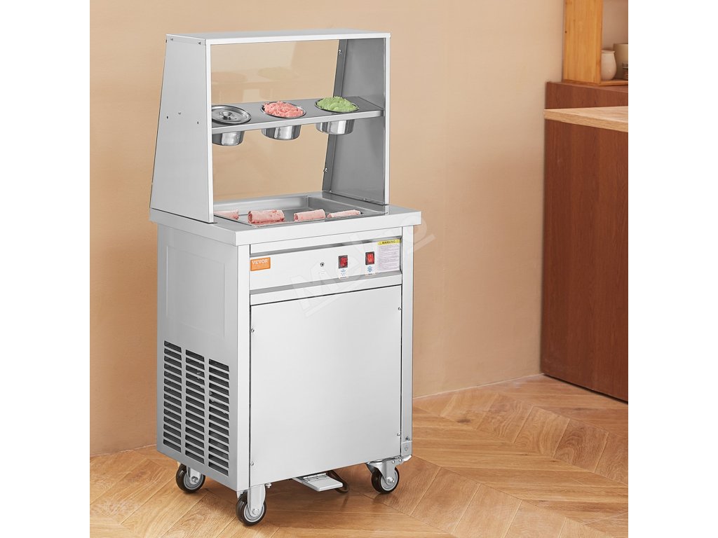 Stroj na rolovanú zmrzlinu 13.8"×13.8" nerez, kompresor, 2 stierky
