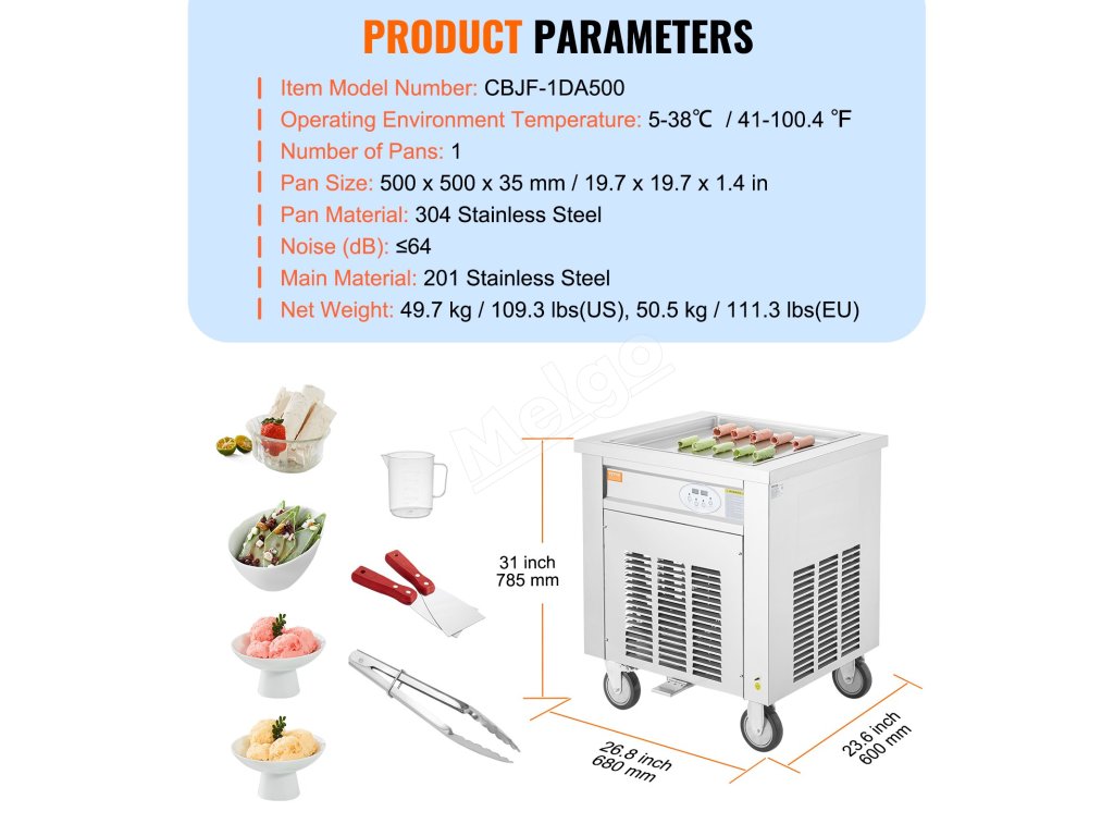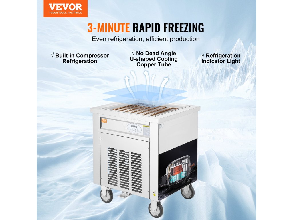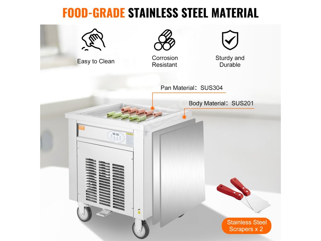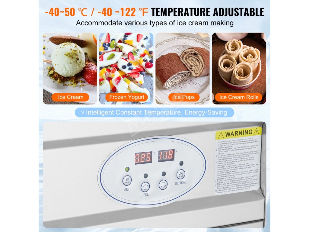 Stroj na rolovanú zmrzlinu 19.7"×19.7" nerez s kompresorom, 2 škrabky