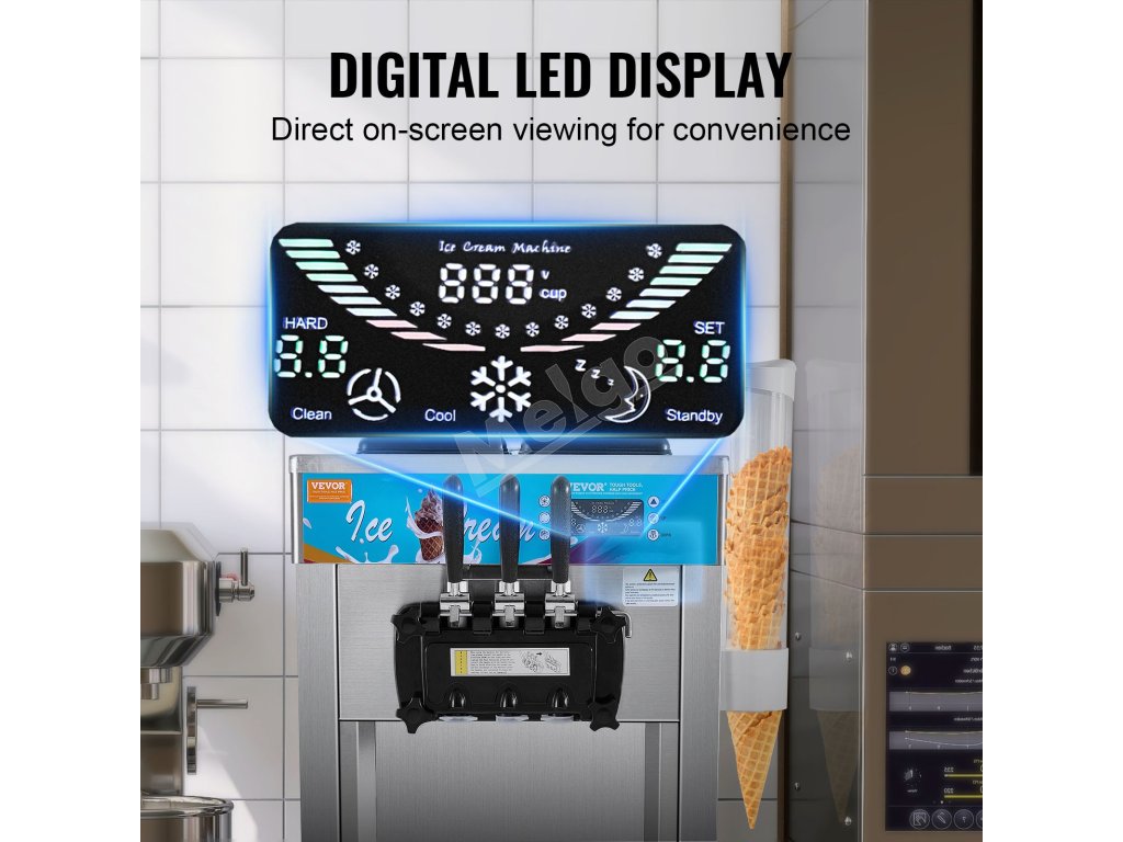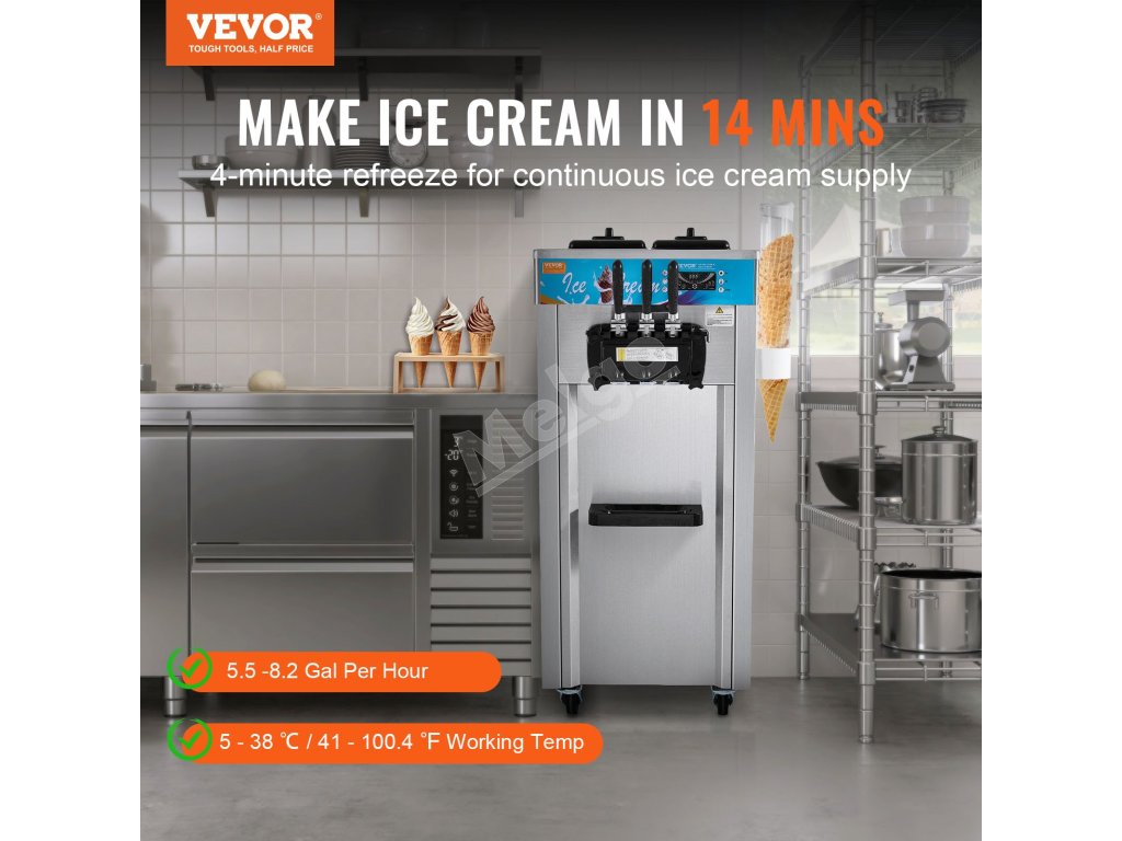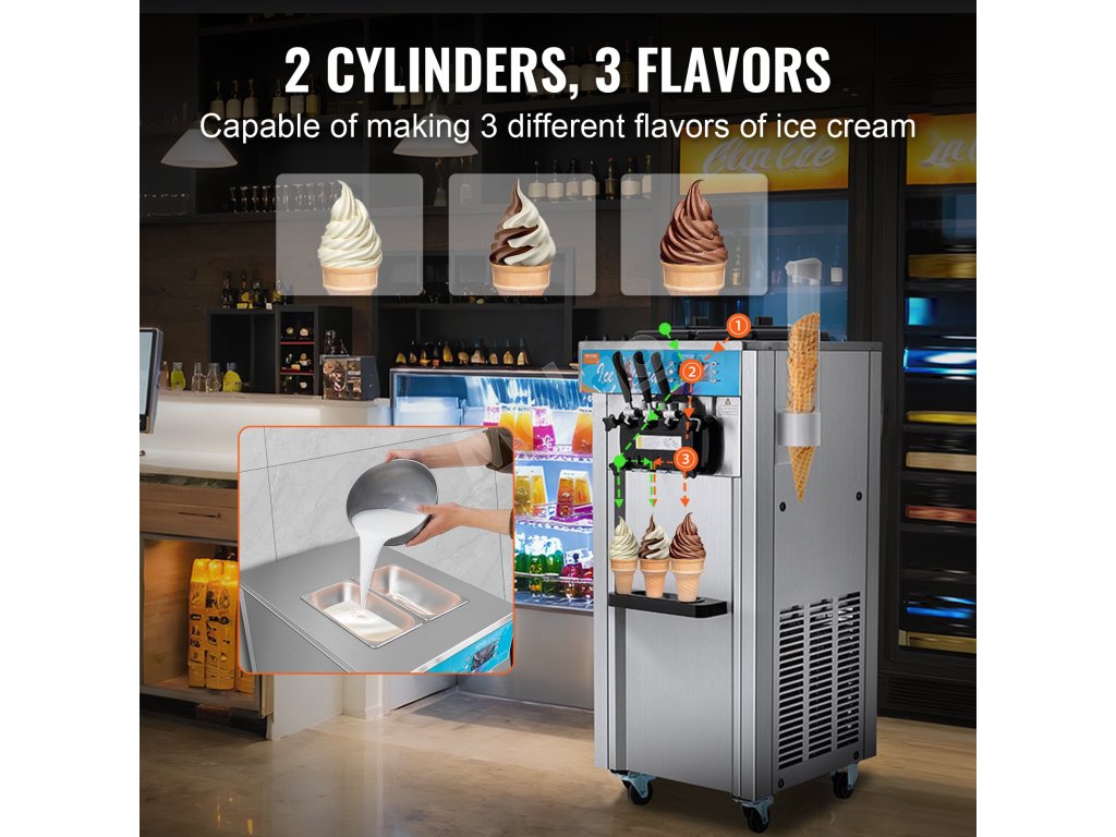 Stroj na točenú zmrzlinu 21-31 L/H, 1500W, 3 príchute, 2×5.5L nerez