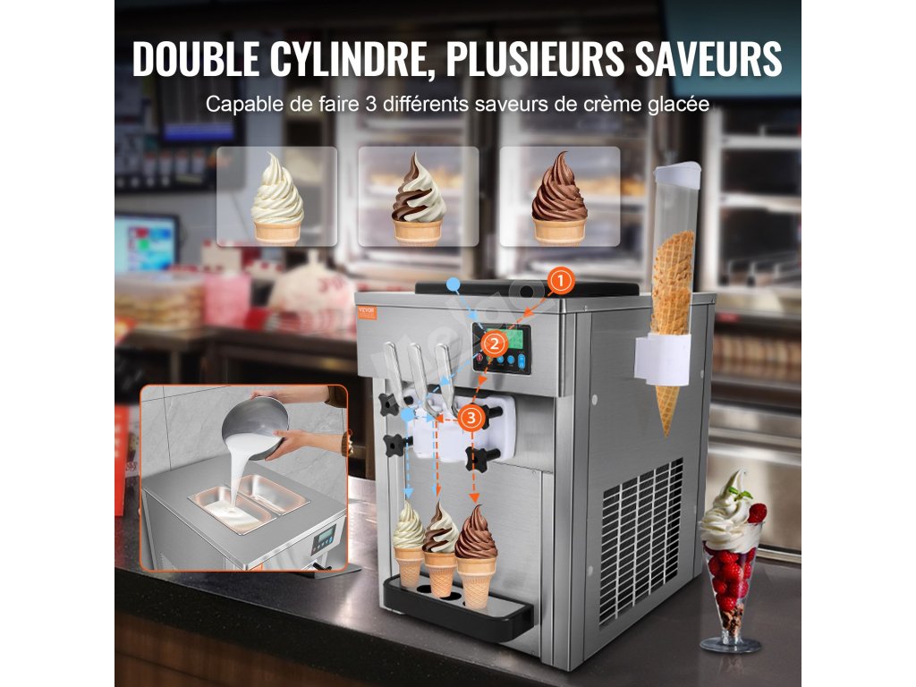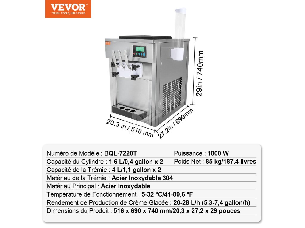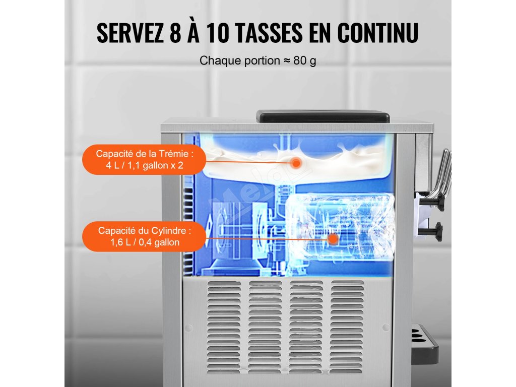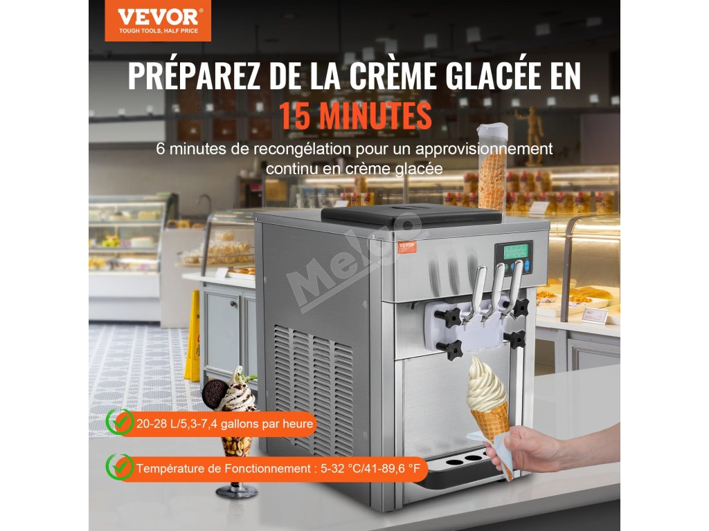 Tento komerčný stolový zmrzlinovač vyrobí zmrzlinu len za 15 minút. S výkonným kompresorom, ktorý pracuje ticho s hlučnosťou menej ako 66 dB. Dokáže nepretržite dodávať 8 až 10 zmrzlinových guliek, pričom dosiahne až 20 l/5,3 galónov zmrzliny za hodinu pre dokonalú hladkú, krémovú štruktúru zmesi.
