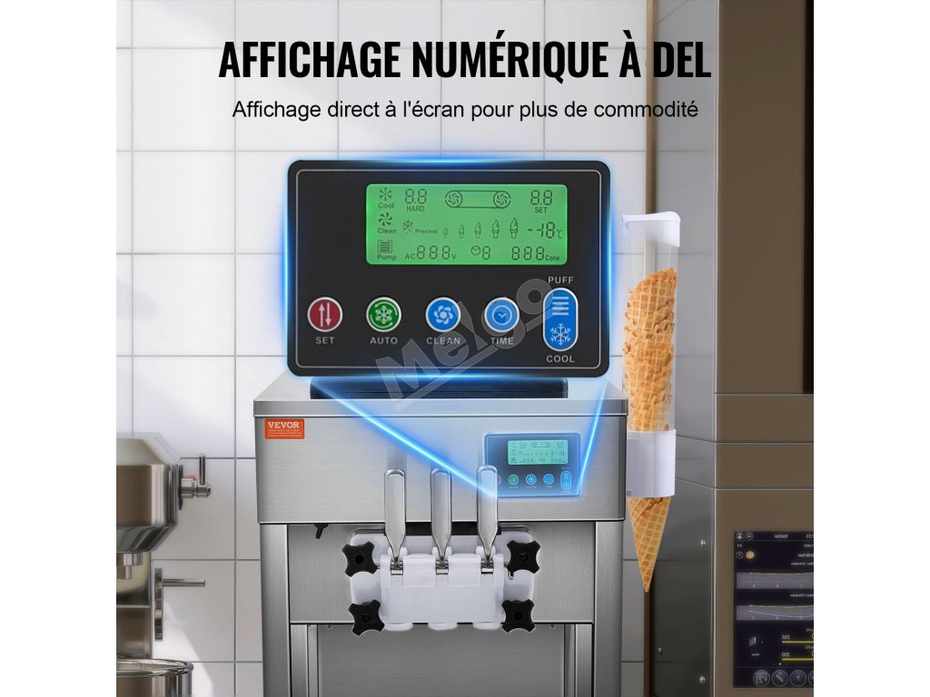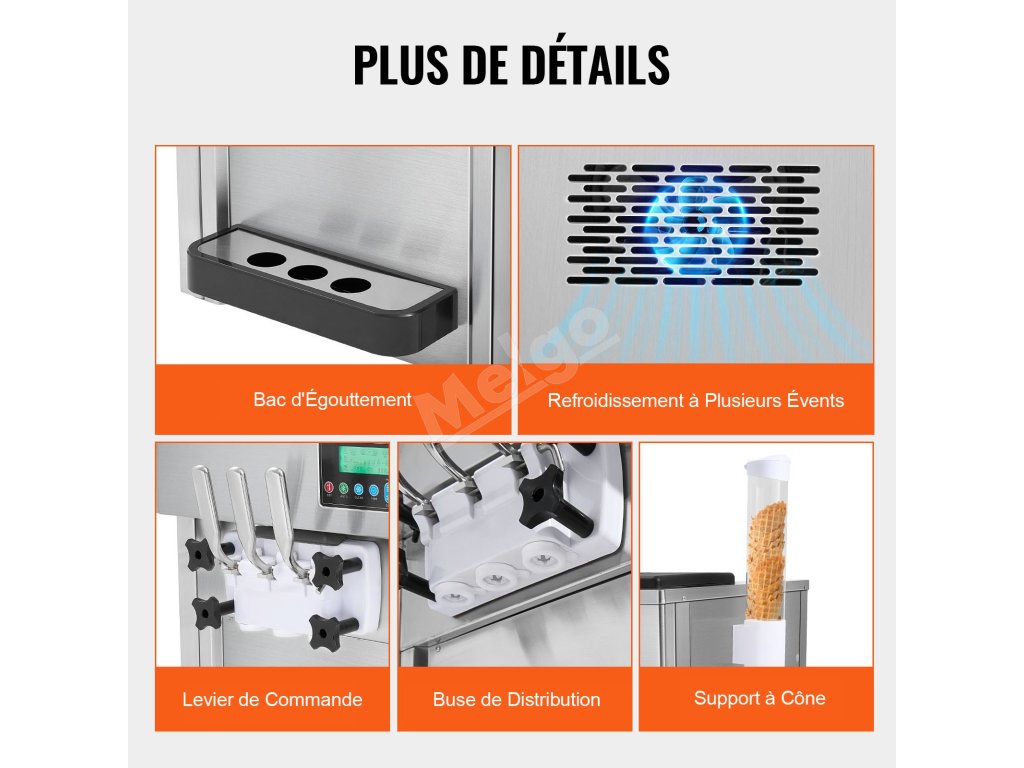 Tento stroj na výrobu zmrzliny na jemné podávanie je vyrobený z vysokokvalitnej nehrdzavejúcej ocele s valcom z potravinárskej nehrdzavejúcej ocele 304. Je odolný voči korózii, čo zaručuje dlhú životnosť a hygienu v komerčných zariadeniach. Ľahko sa čistí: Stačí naliať vodu a stlačiť tlačidlo na spustenie funkcie automatického čistenia.