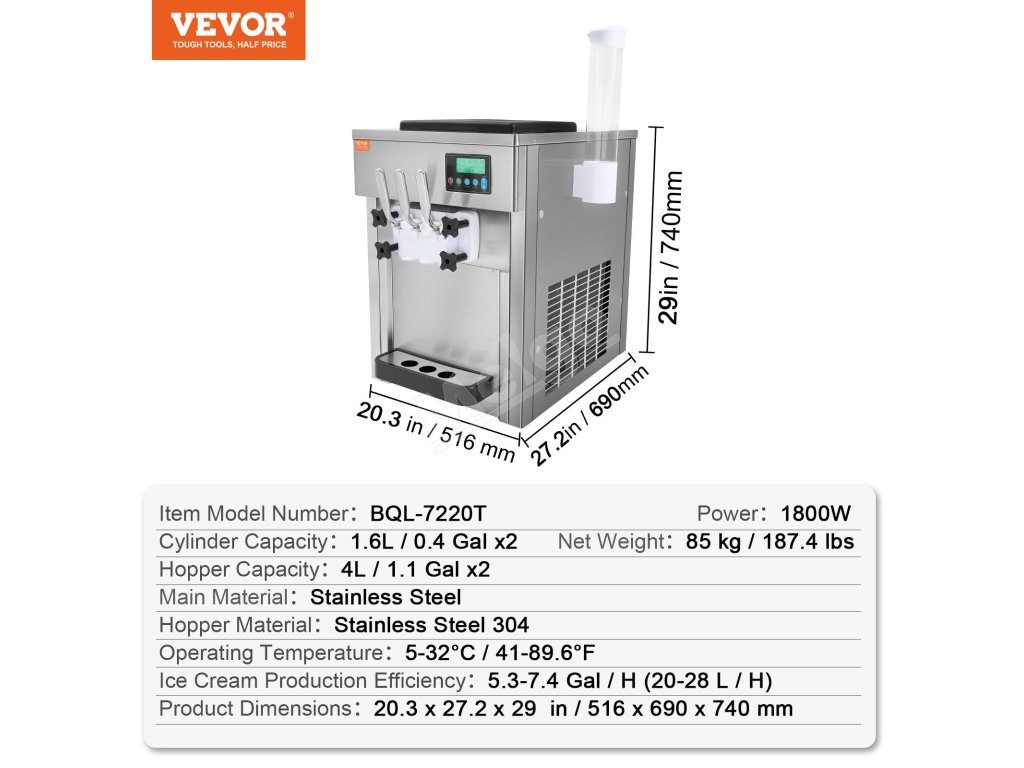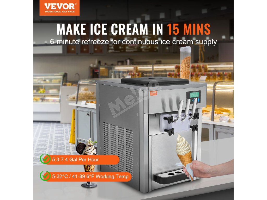 Stroj na točenú zmrzlinu 3 príchute 21 QT/H 1800W 2×4L 2×1.8L
