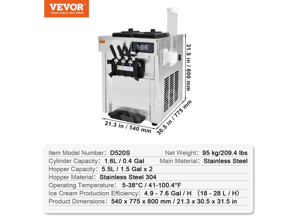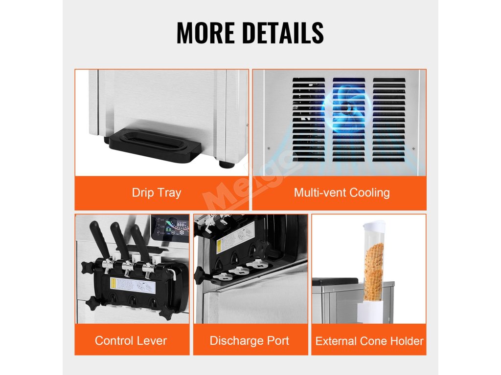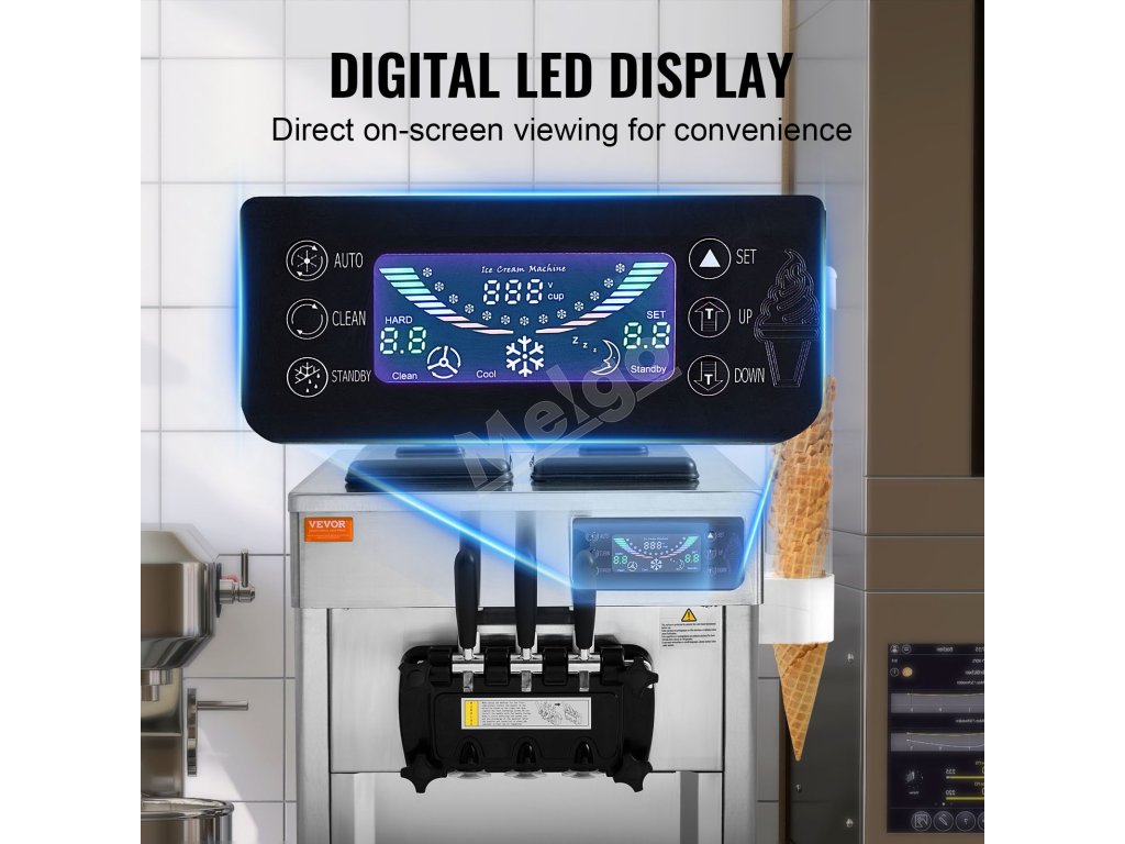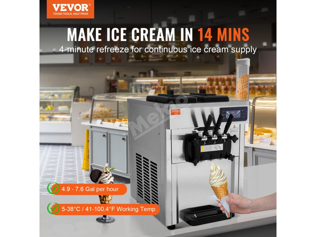 Zmrzlinový stroj 3 príchute 18–28L/h 1650W 2×5.5L autočistenie