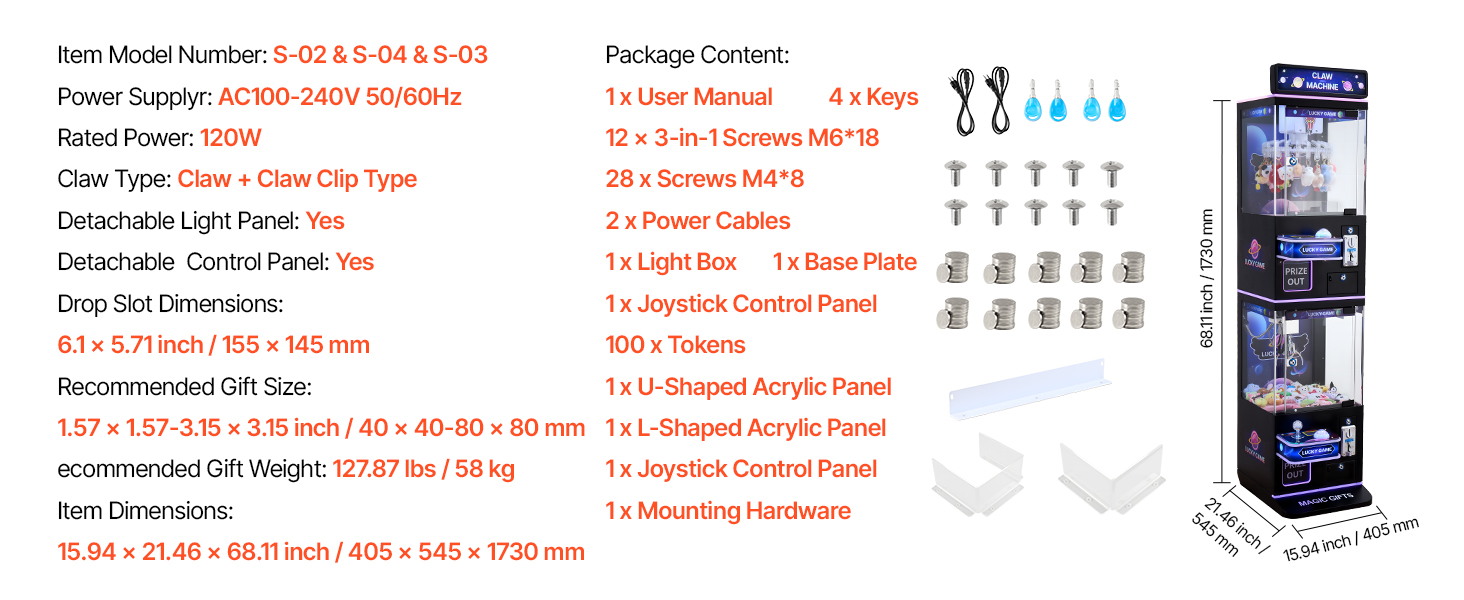 Nastavte si obtiažnosť podľa potreby a začnite hru vkladaním mincí. Žeriavový automat s pazúrmi funguje hladko, zlepšuje úspešnosť a je vybavený širším otvorom na výhry, aby sa zabránilo zaseknutiu pre jednoduchšie získavanie.