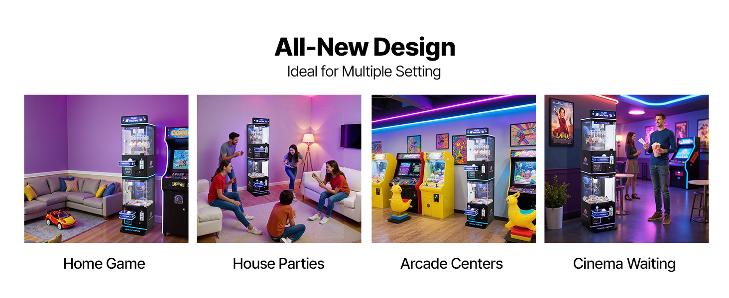 Režim drápačky chytá hračky rôznych veľkostí, zatiaľ čo režim drapáka si poradí s kartami, príslušenstvom alebo malými plyšovými hračkami. Ľahko použiteľné ovládacie prvky umožňujú hráčom nastaviť smer pazúrika a čas pádu, čo ponúka zábavu, výzvu a nekonečnú zábavu.