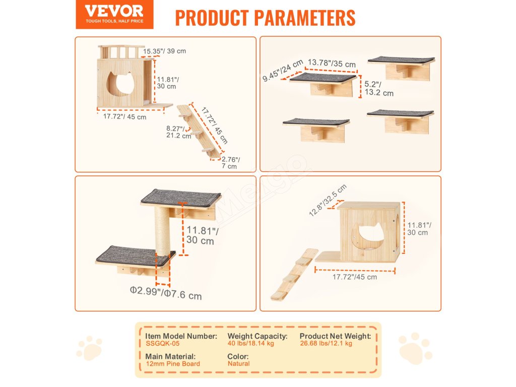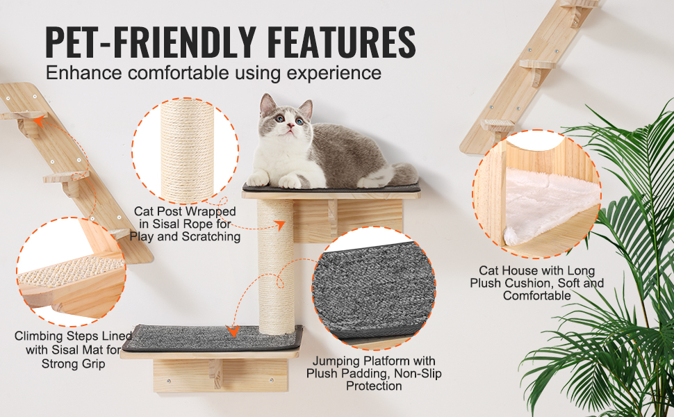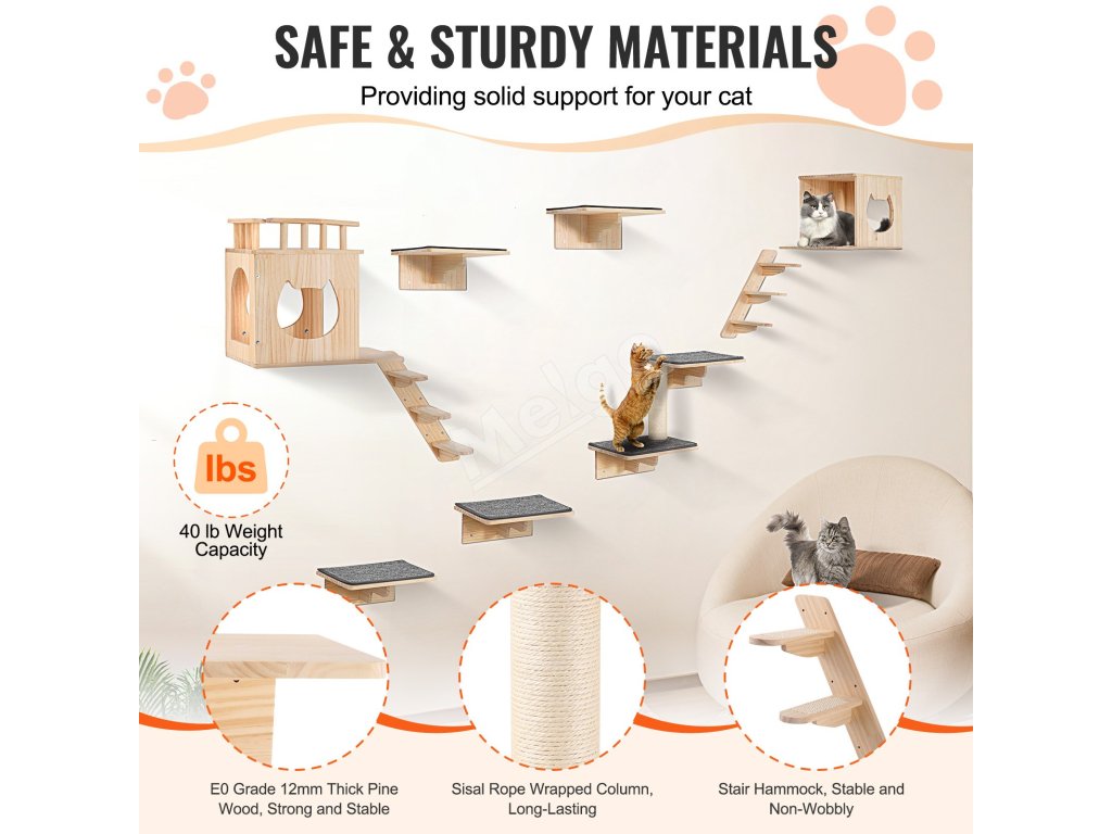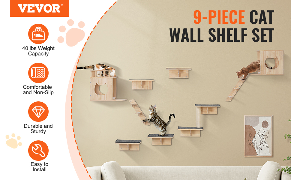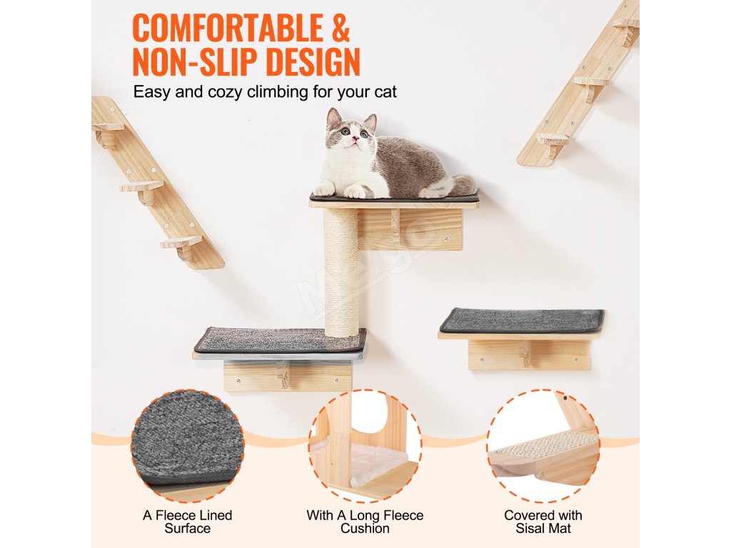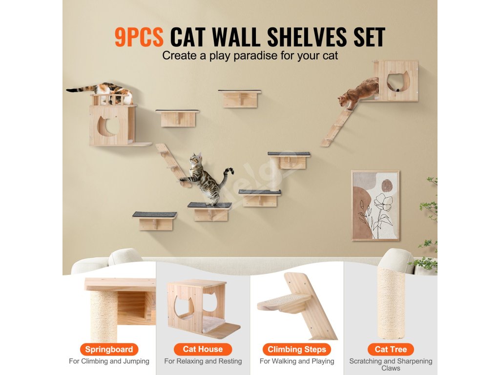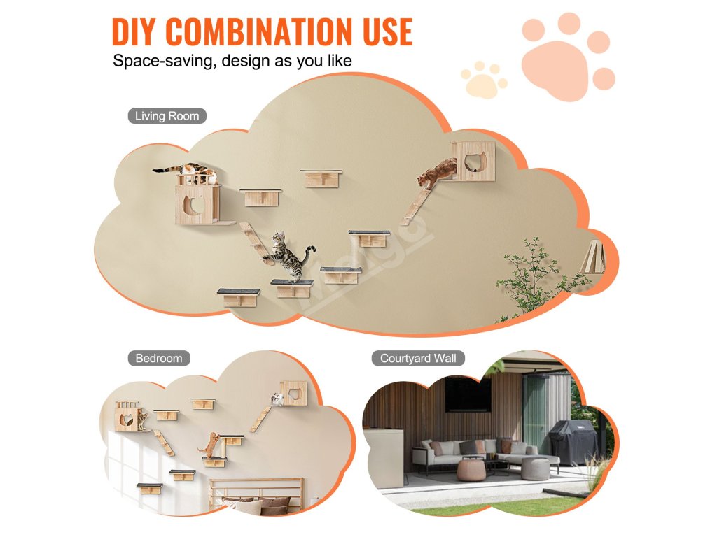Nástenné police pre mačky VEVOR - zábavný priestor pre vašu mačku!