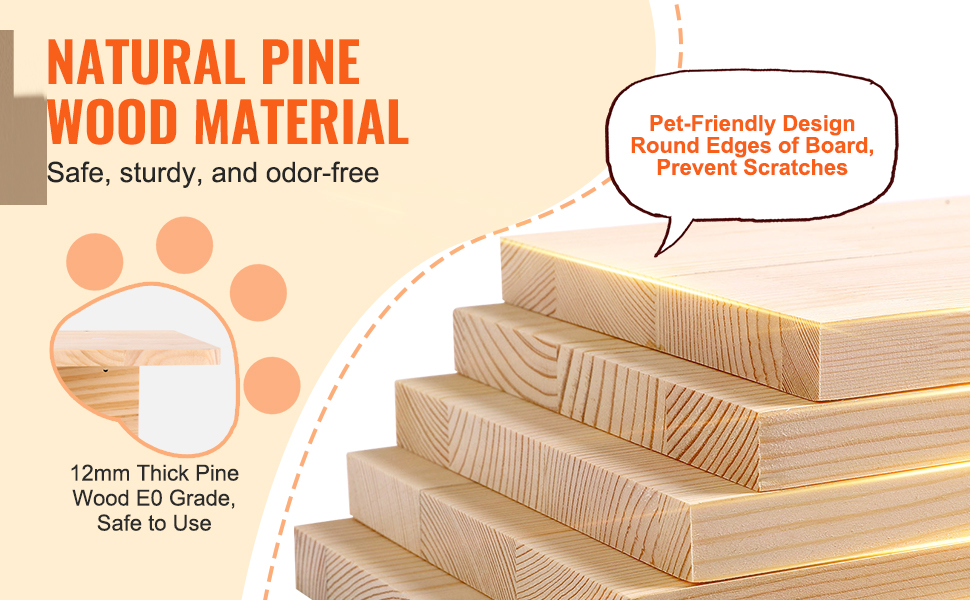 Plávajúce hojdačky pre mačky sú vyrobené z prírodného borovicového dreva, ktoré poskytuje stabilnú oporu, je zdravotne nezávadné a bez zápachu, čím vytvára bezpečné prostredie pre vašu mačku.