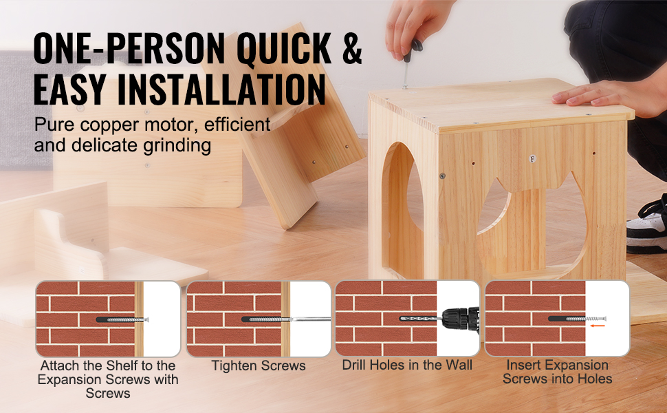Súprava nástenného nábytku pre mačky sa dodáva s rôznym príslušenstvom, ktoré vyhovuje rôznym potrebám montáže na stenu.