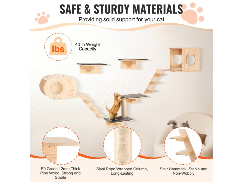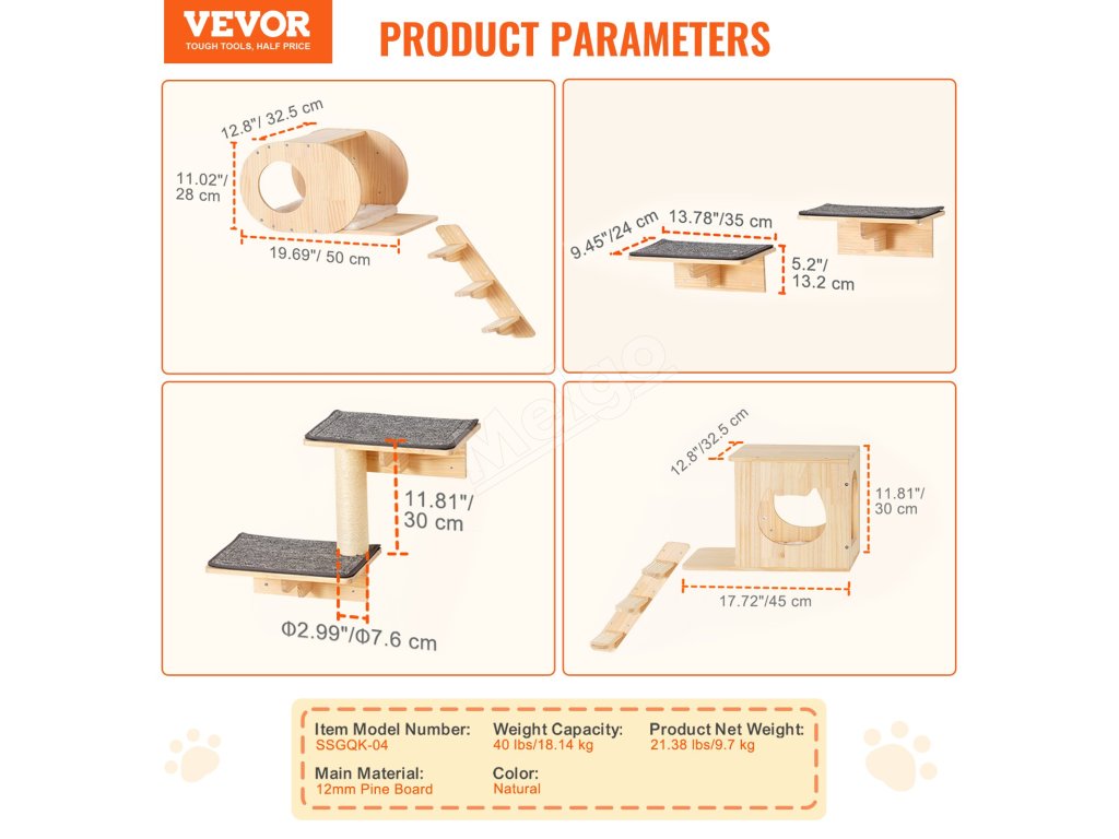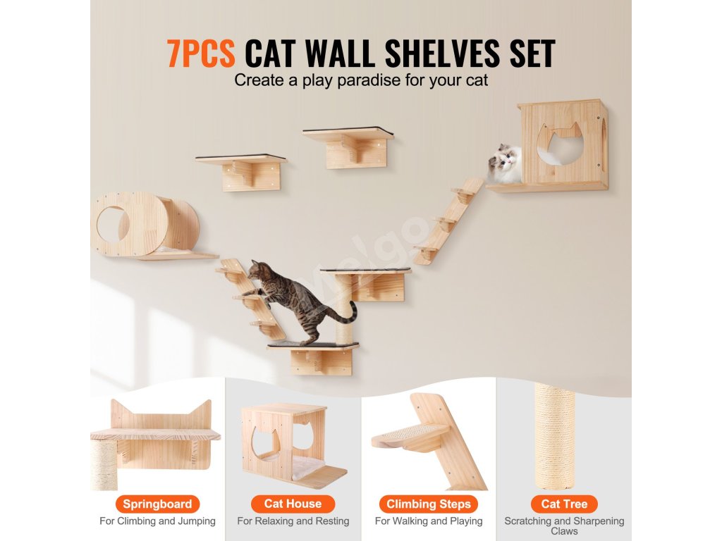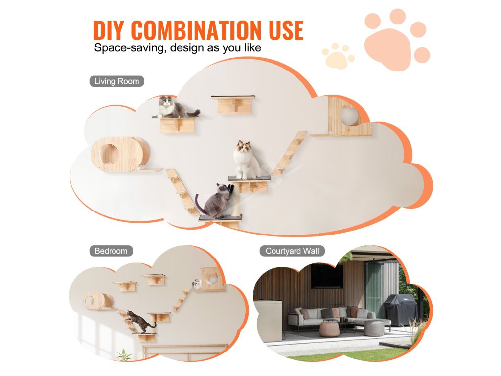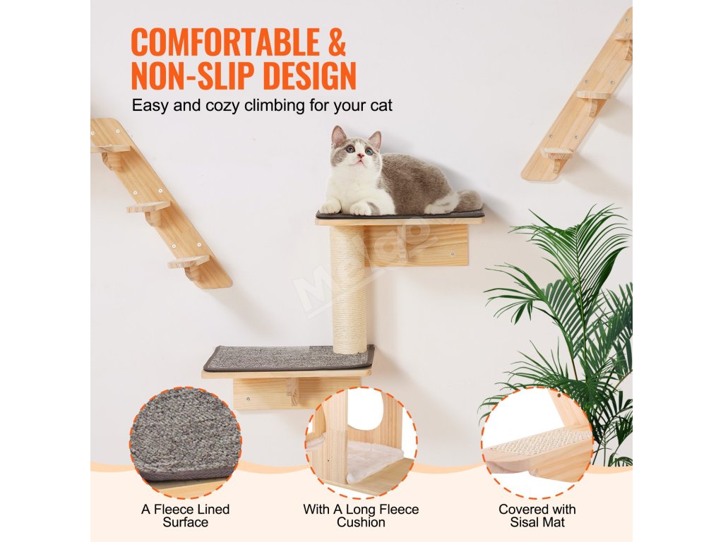 Nástenné police pre mačky VEVOR - zábavný priestor pre vašu mačku!