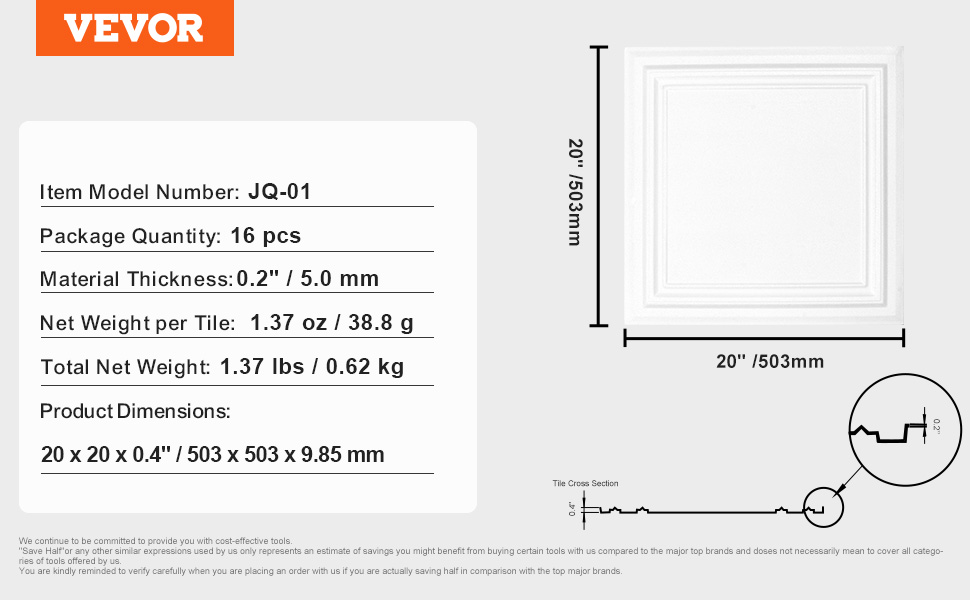 | Rozmery výrobku | 20 x 20 x 0,4" / 503 x 503 x 9,85 mm |