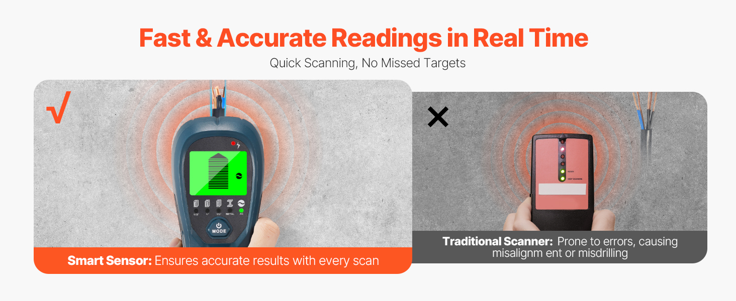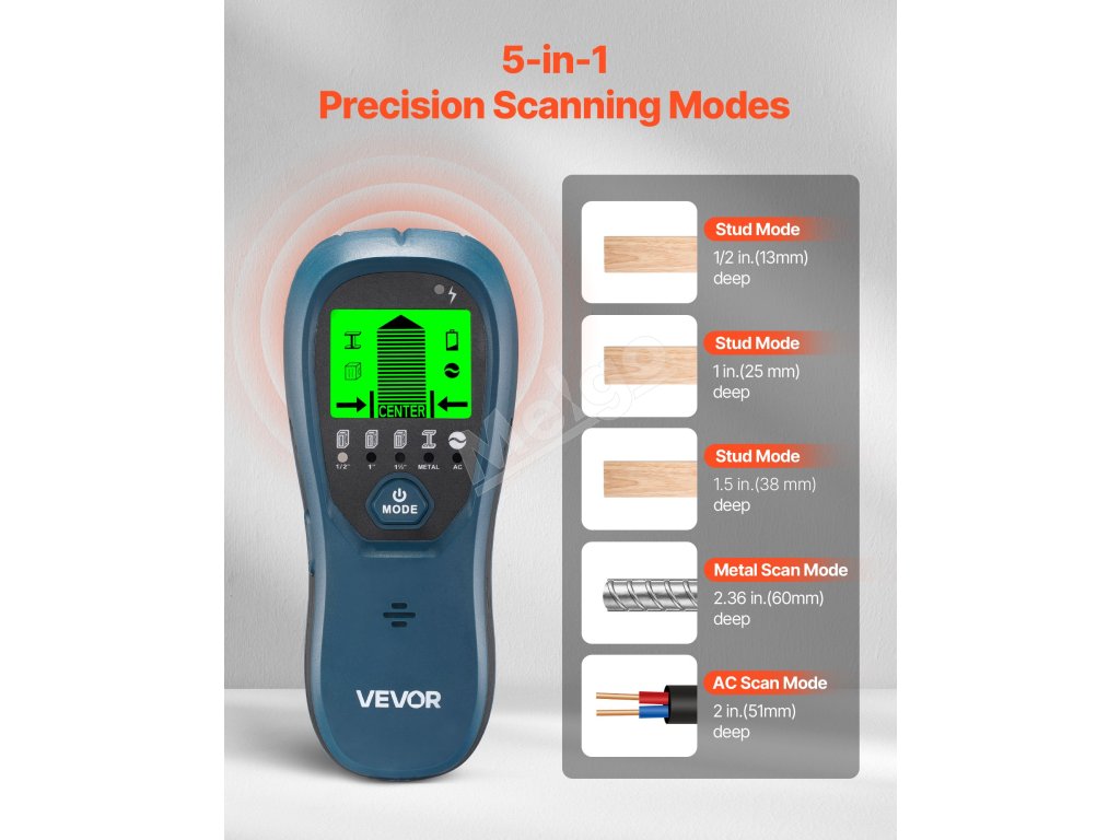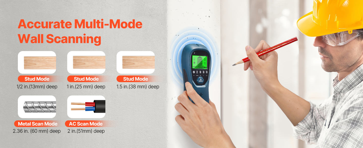 Tento vyhľadávač kolíkov s 5 profesionálnymi režimami rýchlo odhalí skryté konštrukcie v rôznych materiáloch a hĺbkach stien. Jednoducho prepínajte medzi režimami na vyhľadávanie drevených, kovových a káblových kolíkov, vďaka čomu je univerzálny na širokú škálu úloh na zlepšenie domácnosti - šetrí čas a zvyšuje efektivitu!