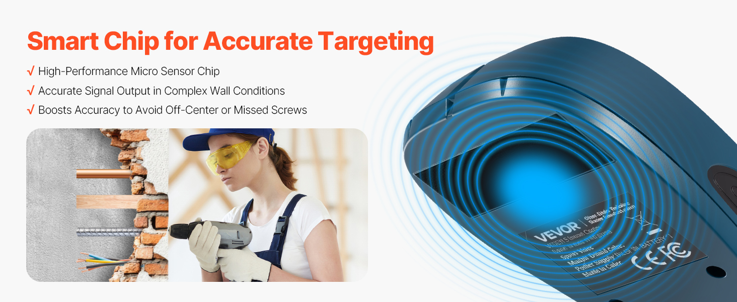 Vybavený vysoko výkonným mikrosenzorovým čipom poskytuje hľadač stenových svorníkov výnimočné rozpoznávanie údajov na presnú lokalizáciu stredu a okrajov. To zaručuje presnú inštaláciu bez poškodenia stien, a to aj v zložitých materiálových prostrediach. Stabilné a presné signály zakaždým.