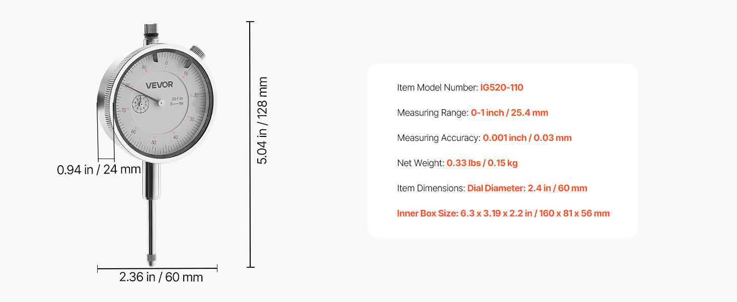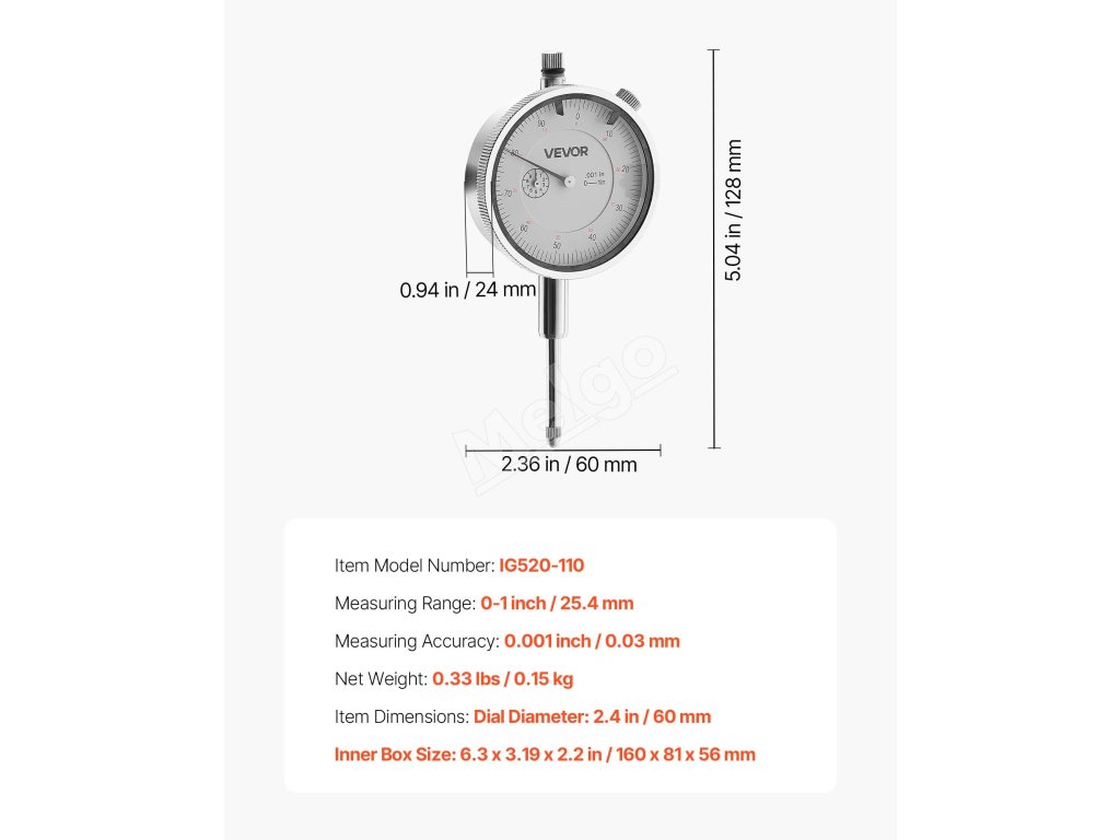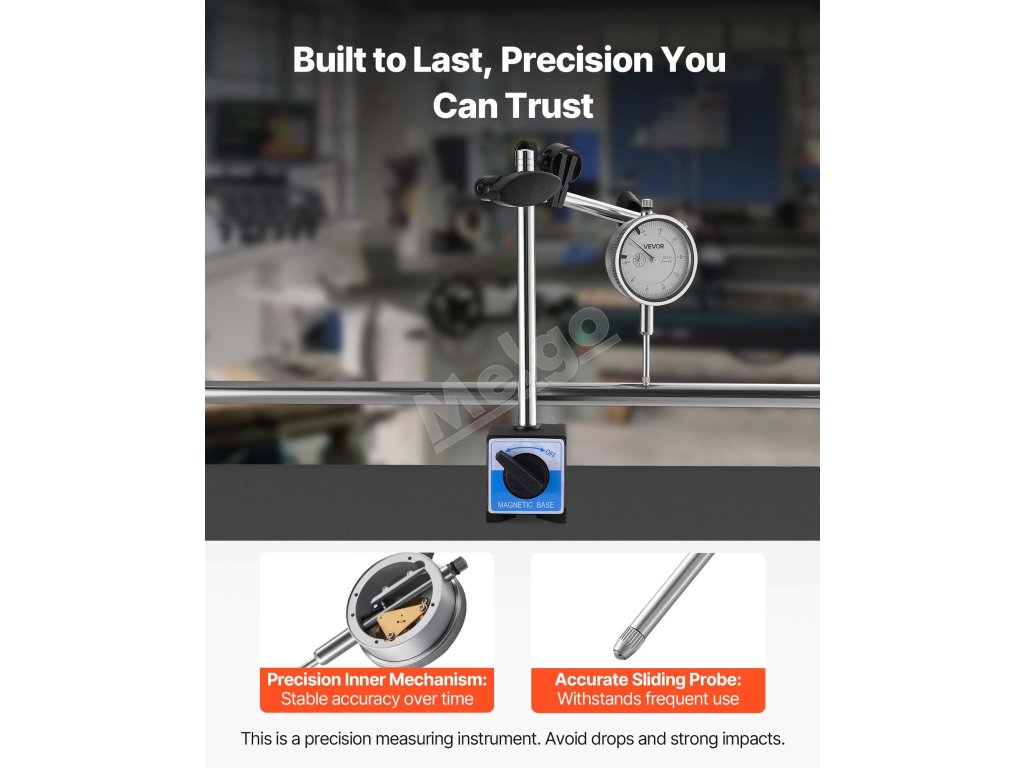 Dosiahnite presné výsledky pomocou tohto ľahko použiteľného číselníkového testovacieho indikátora. Má stabilnú základňu a prehľadnú stupnicu, ideálnu na obrábanie, opravy alebo laboratórne kontroly. Nie je potrebné žiadne školenie, inžinieri a domáci majstri môžu rýchlo merať otvory a povrchy so spoľahlivou presnosťou.