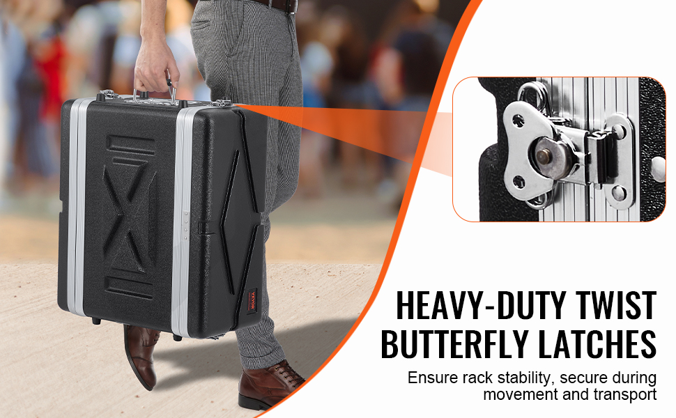 Tento rackový kufor je vybavený odolným motýlikovým zámkom a ponúka spoľahlivé zabezpečenie. Robustný zámok udržiava kufor bezpečne uzavretý a zabraňuje náhodnému otvoreniu, čím zabezpečuje, že vaše zariadenie zostane chránené počas prepravy a používania. Vychutnajte si pokojnú myseľ s vedomím, že vaše zariadenie je v bezpečí.