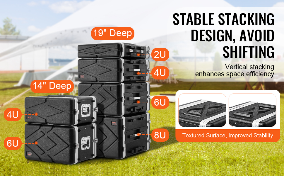 Tento rackový kufor sa dodáva s povrchovými drážkami, ktoré poskytujú stabilné stohovacie riešenie. Zabraňuje skĺznutiu a posunutiu, vďaka čomu zostane vaše zariadenie usporiadané a v bezpečí. Stabilná konštrukcia zvyšuje bezpečnosť a umožňuje bezproblémové stohovanie viacerých kufrov.
