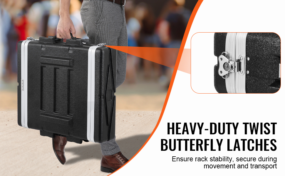 Tento rackový kufor je vybavený odolným motýlikovým zámkom, ktorý poskytuje spoľahlivé zabezpečenie. Robustný zámok udržiava kufor bezpečne uzavretý a zabraňuje náhodnému otvoreniu, čím zabezpečuje, že vaše zariadenie zostane chránené počas prepravy a používania. Vychutnajte si pokojnú myseľ s vedomím, že vaše zariadenie je v bezpečí.