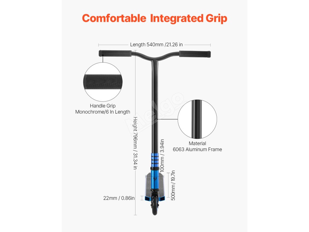 Táto triková kolobežka je navrhnutá špeciálne pre mladých začiatočníkov. Táto kolobežka je ideálnou voľbou, či už sa kĺžete po chodníku, alebo sa pripravujete na jazdu v skateparku. Plne vybavená na jednoduchý vstup do sveta kolobežiek.