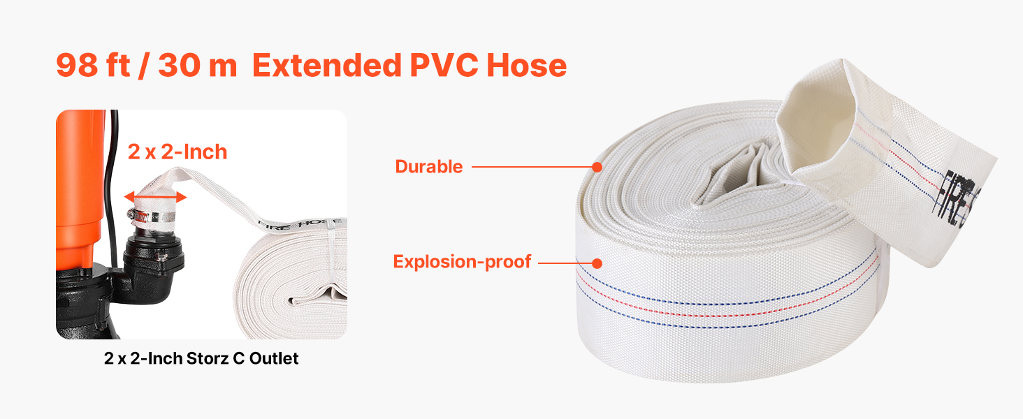 Dodáva sa s odolnou PVC hadicou skonštruovanou na dlhú životnosť, ktorá sa vyznačuje konštrukciou odolnou proti prasknutiu. Toto elektrické čerpadlo na odpadky zaručuje spoľahlivú a dlhodobú prevádzku v náročných podmienkach.