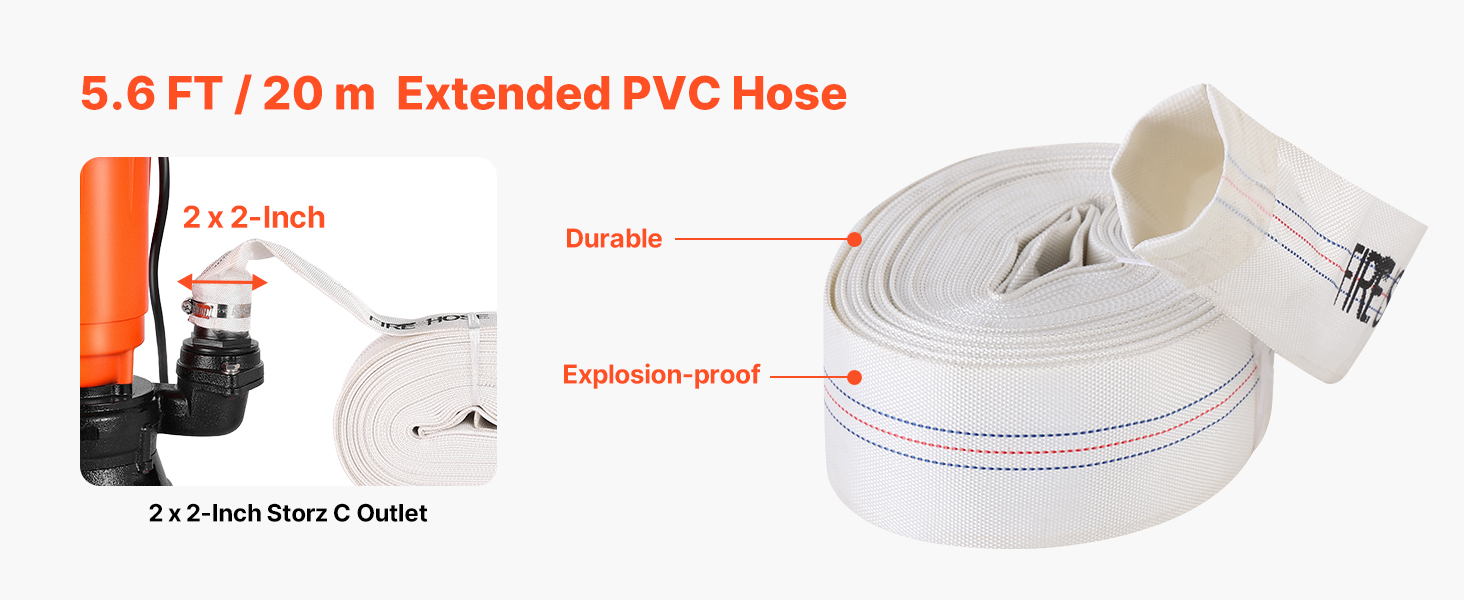 Dodáva sa s odolnou PVC hadicou skonštruovanou na dlhú životnosť, ktorá sa vyznačuje konštrukciou odolnou proti prasknutiu. Toto elektrické čerpadlo na odpadky zaručuje spoľahlivú a dlhodobú prevádzku v náročných podmienkach.