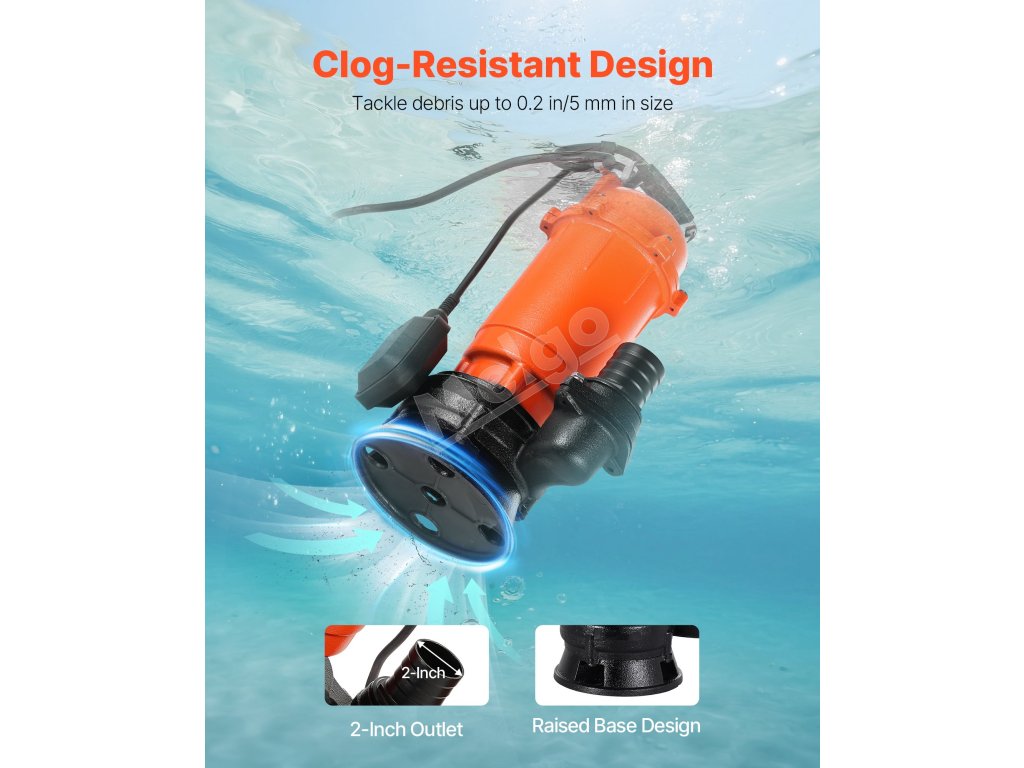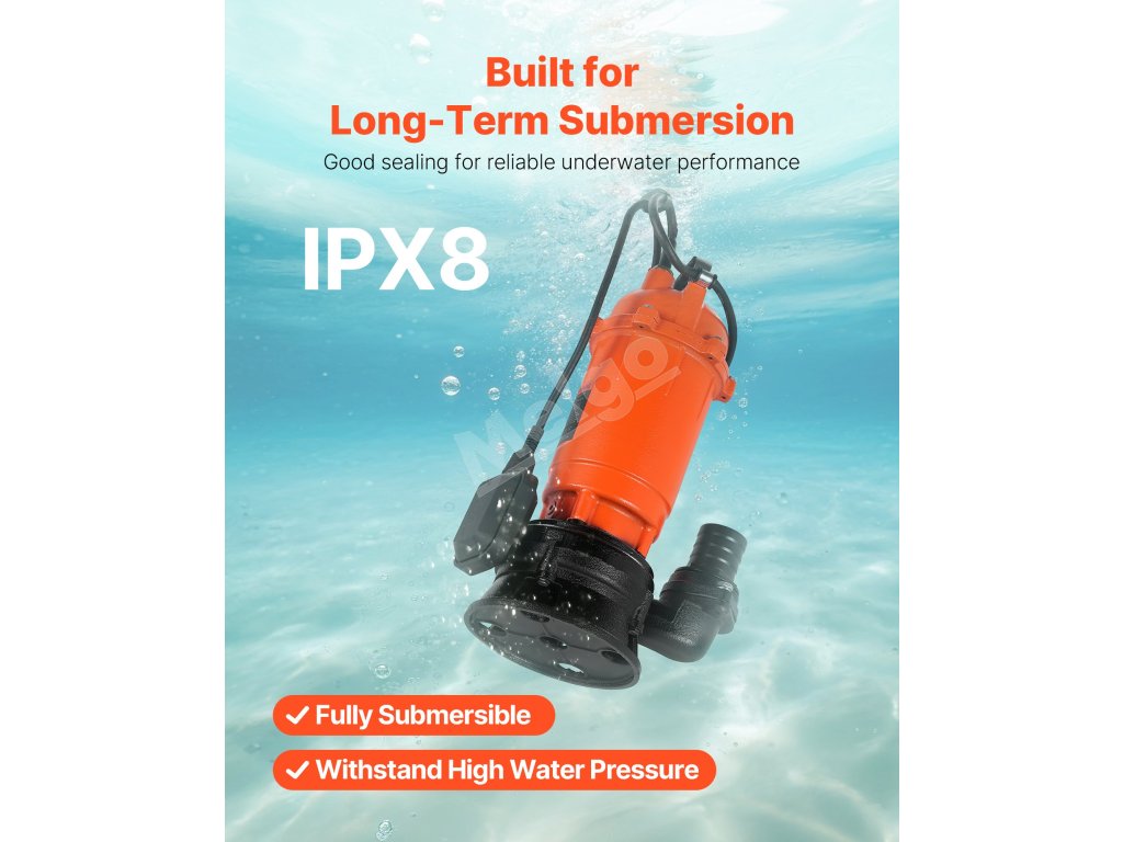 Toto 1500W (2 HP) kalové čerpadlo s maximálnym prietokom 22 800 l/h (6023 GPH) a maximálnym výtlakom 18 m (59 stôp) vám pomôže zvládnuť náročné úlohy spojené s odvádzaním odpadových vôd. Liatinové puzdro a vodotesnosť IPX8 pre spoľahlivý ponorný výkon. Ideálne na vypúšťanie bazénov, rybníkov, fariem atď.