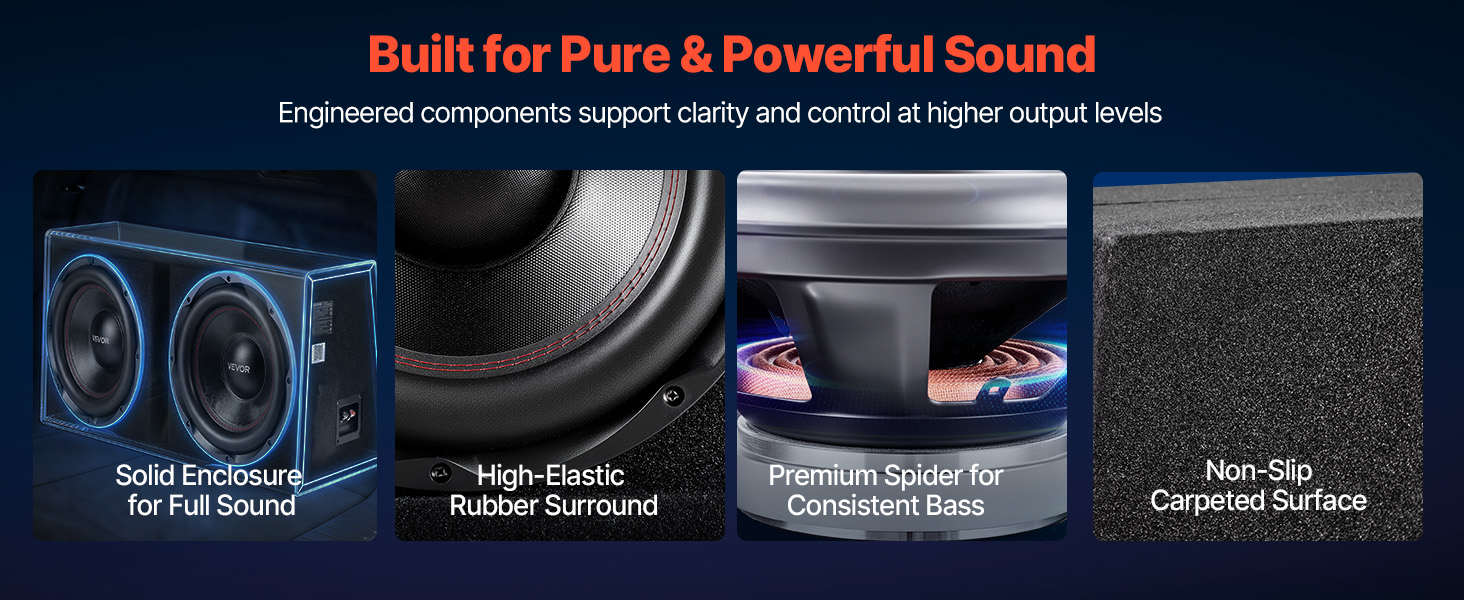 Tento basový systém obsahuje dva 12-palcové subwoofery a samostatný zosilňovač. Je navrhnutý tak, aby premenil váš kufor na priestor zameraný na basy.