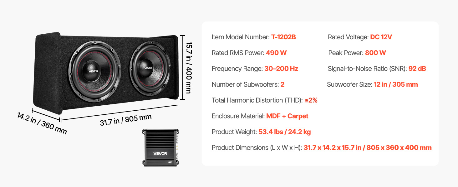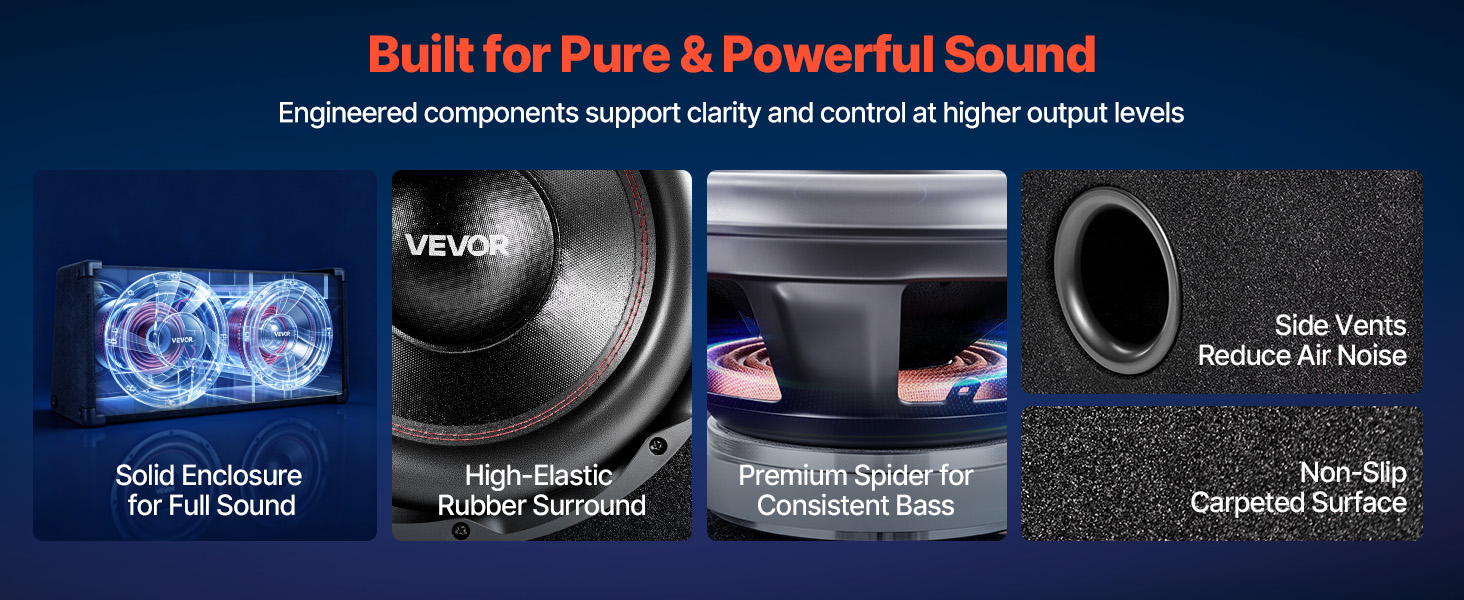 Tento basový systém obsahuje dva 12-palcové subwoofery a samostatný zosilňovač. Je navrhnutý tak, aby premenil váš kufor na priestor zameraný výhradne na basy.