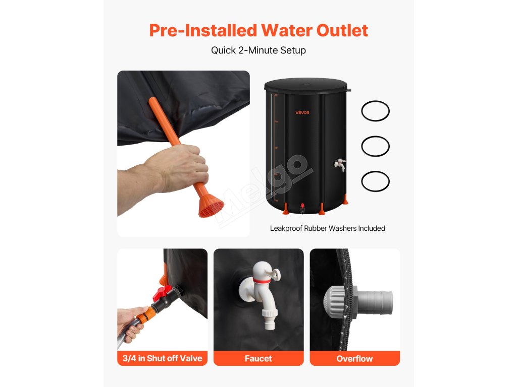 Po vypustení vody možno sud na zber dažďovej vody ľahko zložiť do kompaktných rozmerov na uskladnenie v stiesnených priestoroch, napríklad v kufri auta. Ideálny na skladovanie vody v domácnosti, zavlažovanie záhrady, poľnohospodárske použitie alebo núdzové zásobovanie vodou.