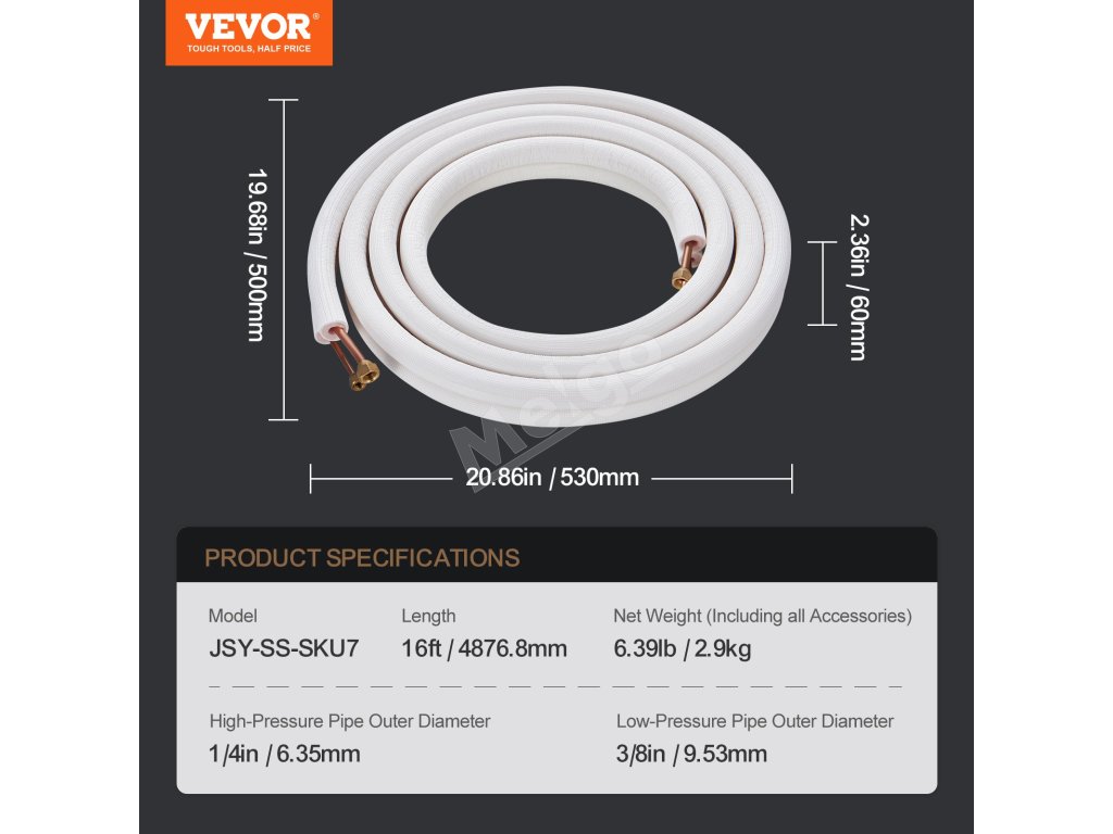 Na lepšiu ochranu vnútorných medených rúrok používa VEVOR na rozdiel od bežných dvojvrstvových izolačných materiálov trojvrstvové izolačné materiály pre vynikajúce izolačné vlastnosti. Reliéfna povrchová úprava zvyšuje odolnosť a prezentuje nepopierateľnú pevnosť.