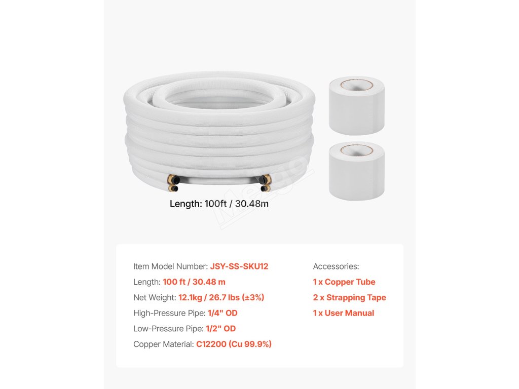 Súprava je kompatibilná s mini-split klimatizačnými jednotkami. Rúrky s vysokou čistotou odolávajú zalomeniu a netesnostiam pri ohyboch, čo je ideálne pre zložité zostavy, ako sú garáže alebo dielne. Dodáva sa s páskou - pripravená na použitie po vybalení z krabice. Jednoduchá inštalácia si vyžaduje len základné nástroje na pripojenie vnútorných a vonkajších jednotiek.