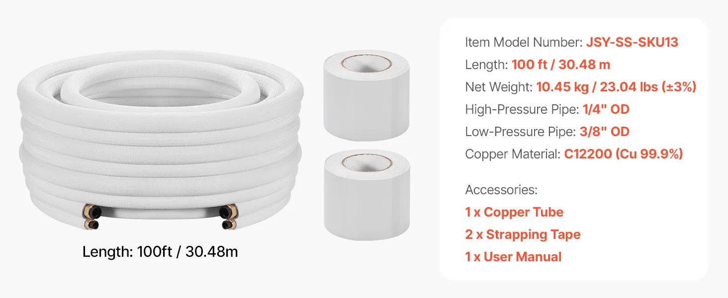 Súprava je kompatibilná s mini-split klimatizačnými jednotkami. Rúrky s vysokou čistotou odolávajú zalomeniu a netesnostiam pri ohyboch, čo je ideálne pre zložité zostavy, ako sú garáže alebo dielne. Dodáva sa s páskou - pripravená na použitie po vybalení z krabice. Jednoduchá inštalácia si vyžaduje len základné nástroje na pripojenie vnútorných a vonkajších jednotiek.