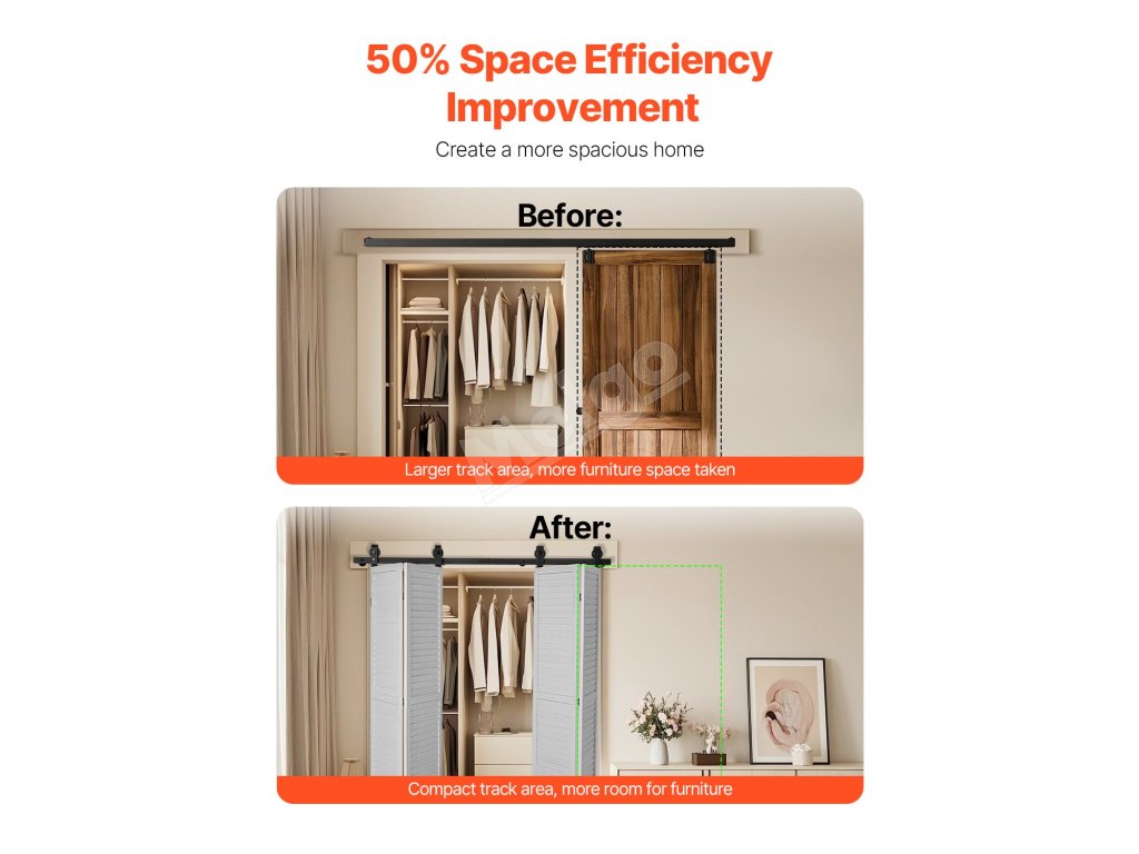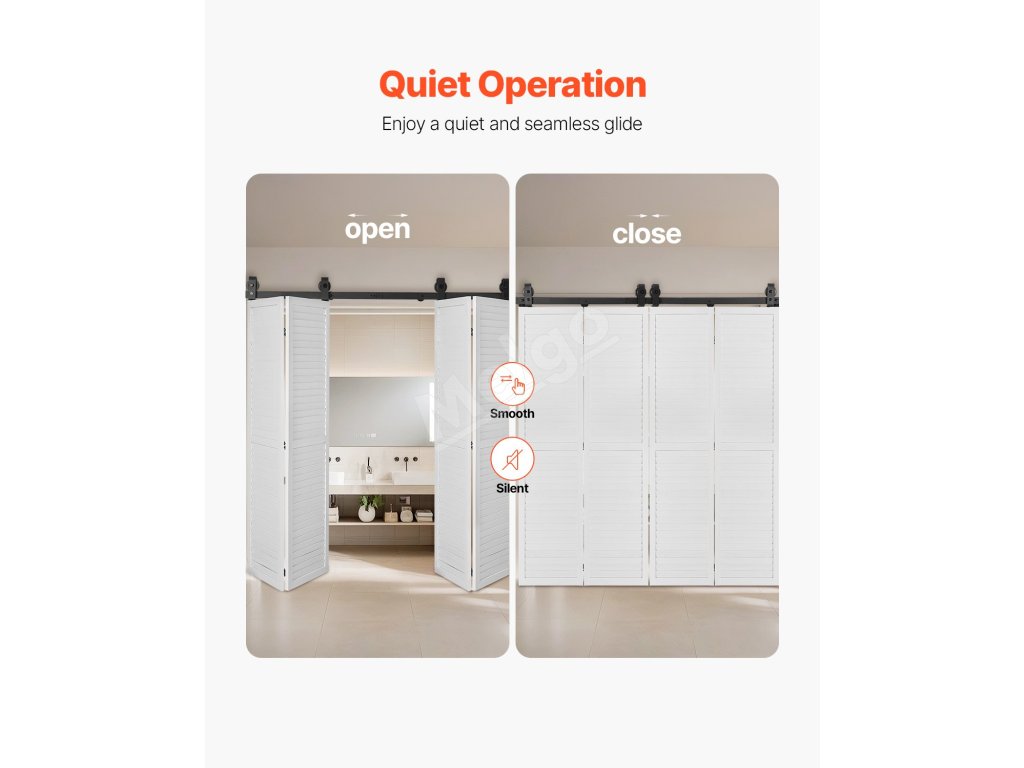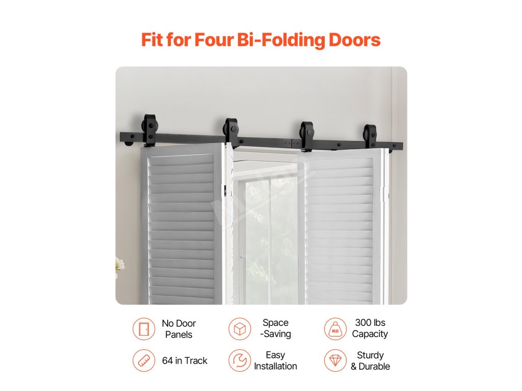 Tento výrobok obsahuje iba súpravu kovania pre skladacie dvere typu barn. Poznámka: Dvere a drevené panely nie sú súčasťou dodávky.