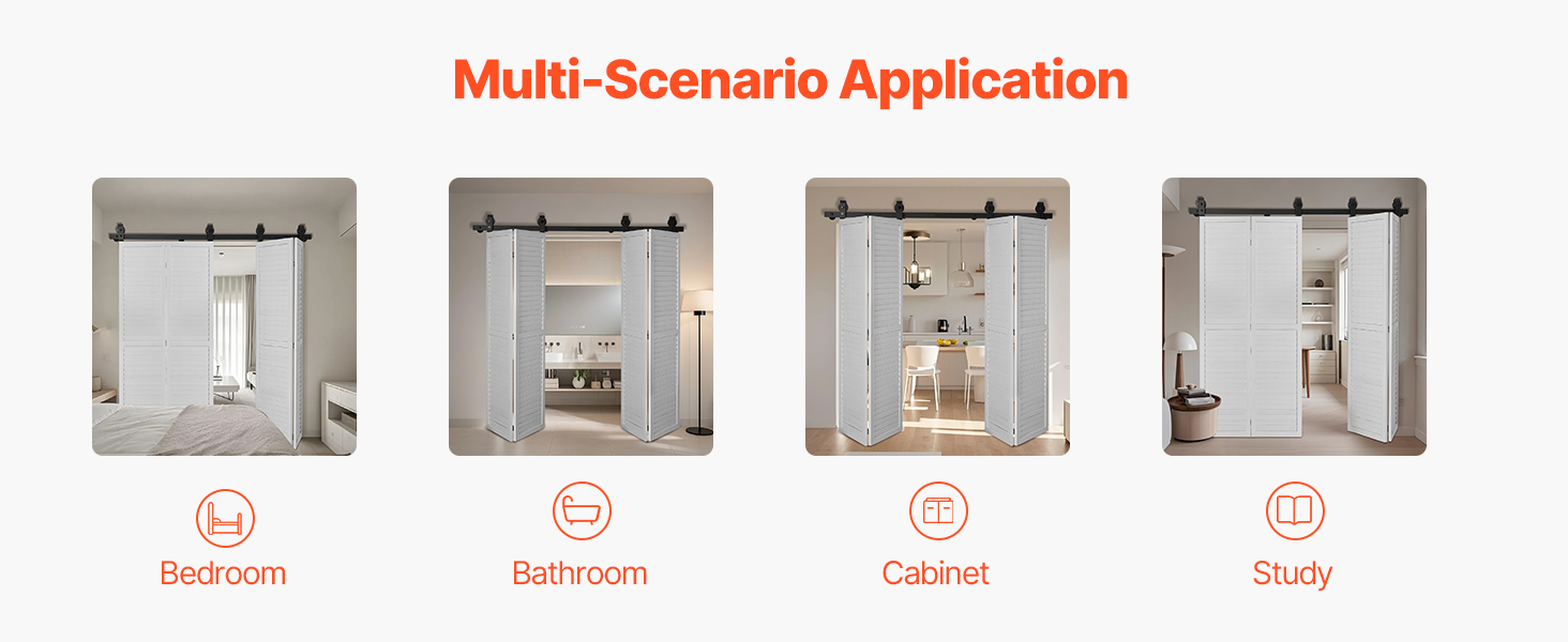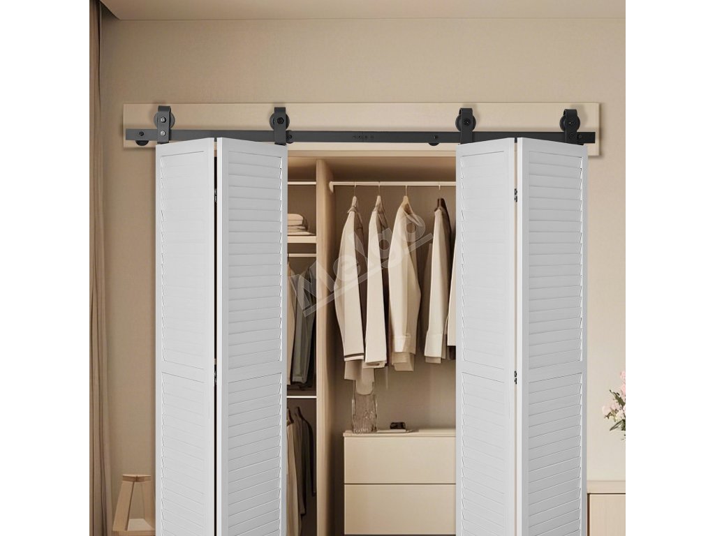 Naša súprava hardvéru pre skladacie dvere je vyrobená z odolnej uhlíkovej ocele, ktorá unesie až 330 libier (150 kg). Tieto koľajnice pre dvojkrídlové šatníkové dvere majú skladací dizajn, ktorý maximalizuje priestor, a čierna prášková farba zaručuje odolnosť proti korózii vo vlhkých priestoroch, ako sú kuchyne a kúpeľne.