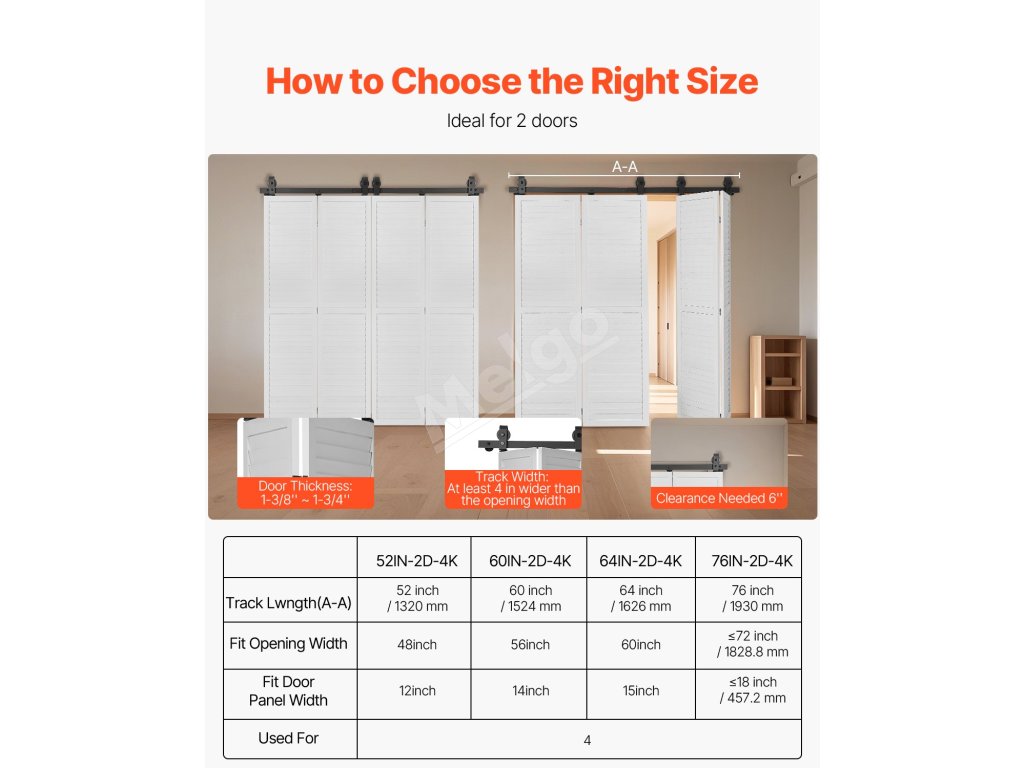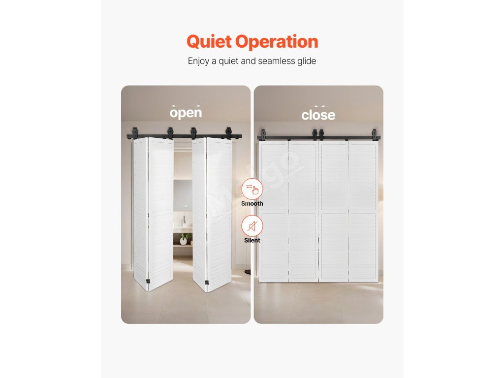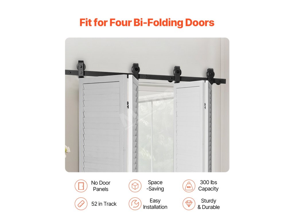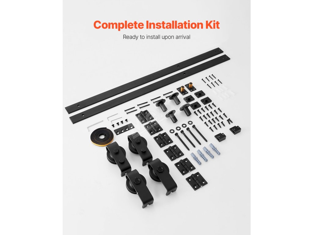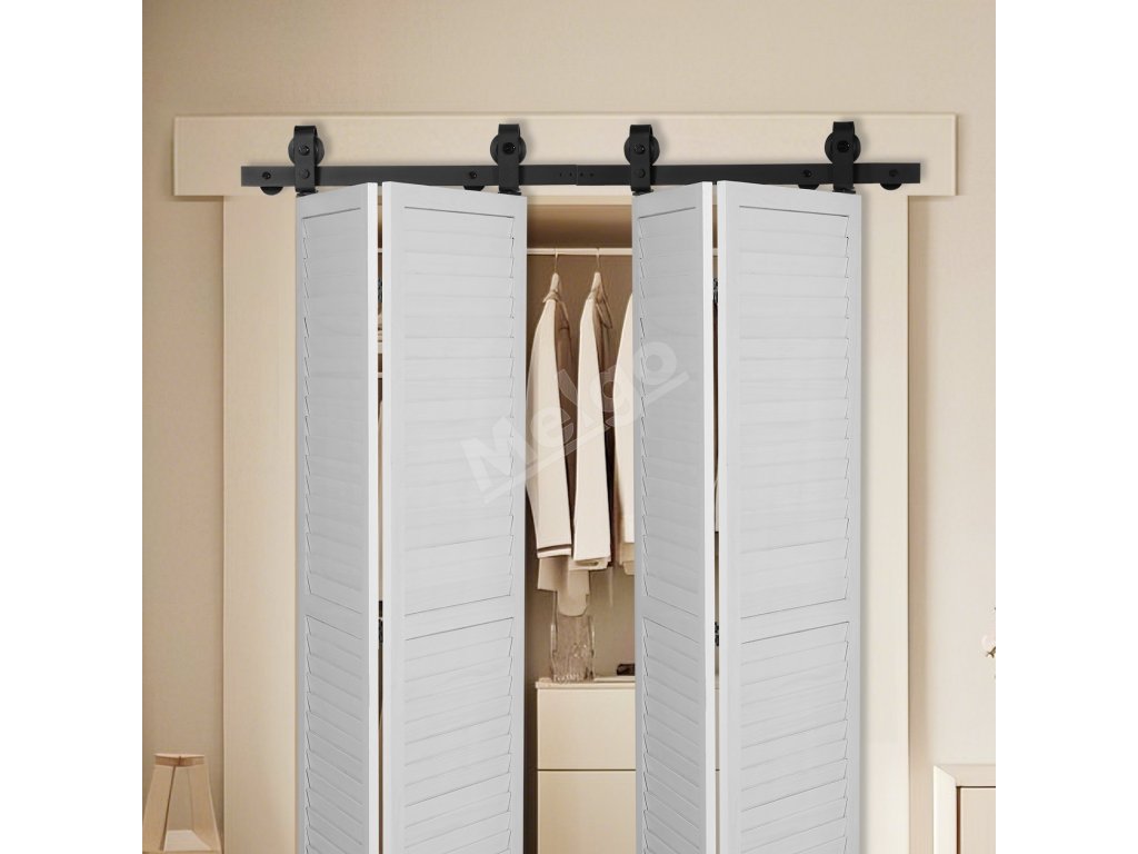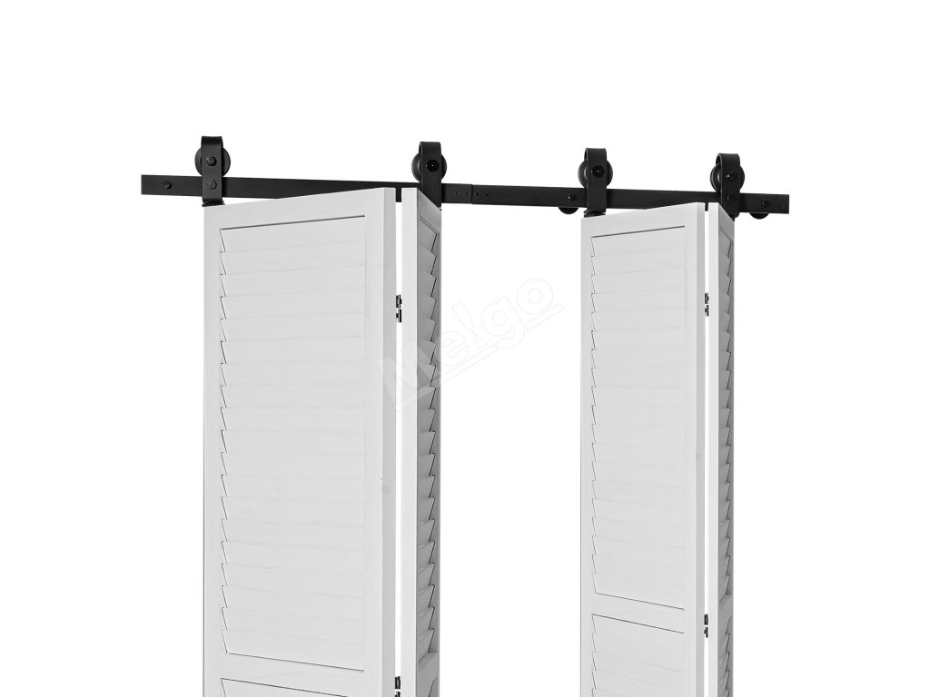 Tento výrobok obsahuje iba súpravu kovania pre skladacie dvere typu barn. Poznámka: Dvere a drevené panely nie sú súčasťou dodávky.