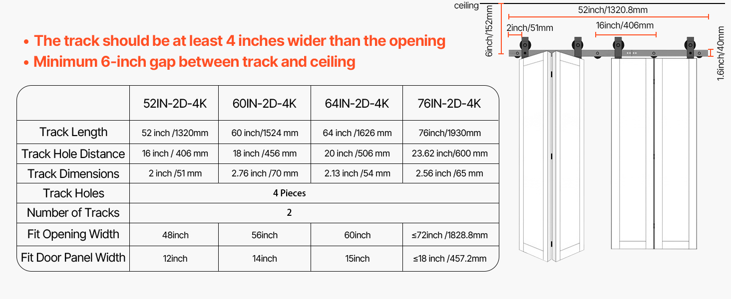 Sada horných koľajníc pre skladacie posuvné dvere 52" pre 4×12"