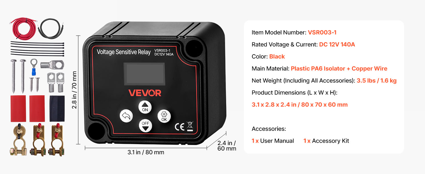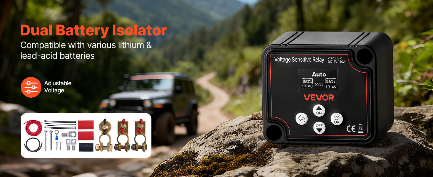 Táto súprava 12 V izolátora s rozdeleným nabíjaním, špeciálne navrhnutá pre systémy dvoch batérií, zabezpečuje súčasné nabíjanie dvoch batérií bez prerušenia napájania zariadenia. Či už vo vašom terénnom vozidle, obytnom vozidle alebo lodi, poskytuje stabilnú a spoľahlivú podporu napájania vašich zariadení.