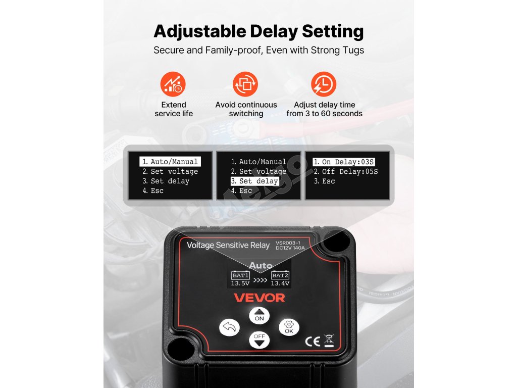 Naše relé citlivé na napätie podporuje nielen flexibilné nastavenie napätia a núdzové reverzné nabíjanie, ale má aj zabudovanú ochranu proti oneskoreniu, aby sa zabránilo stratám pri častom štarte a zastavení. Vrátane zobrazenia dvojitého napätia v reálnom čase vás informuje o stave batérie na spoľahlivé používanie.