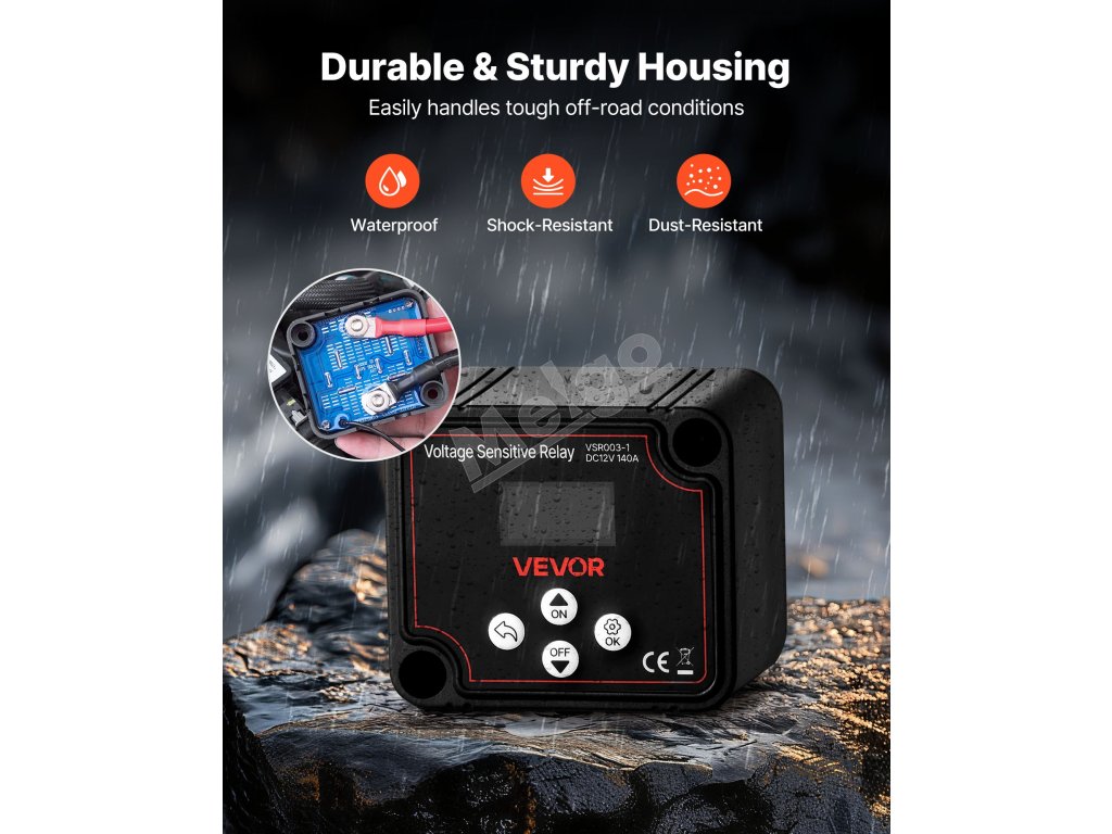 Duálny izolátor batérií 12v 140 amp, vsr man./auto, voltmetr lcd