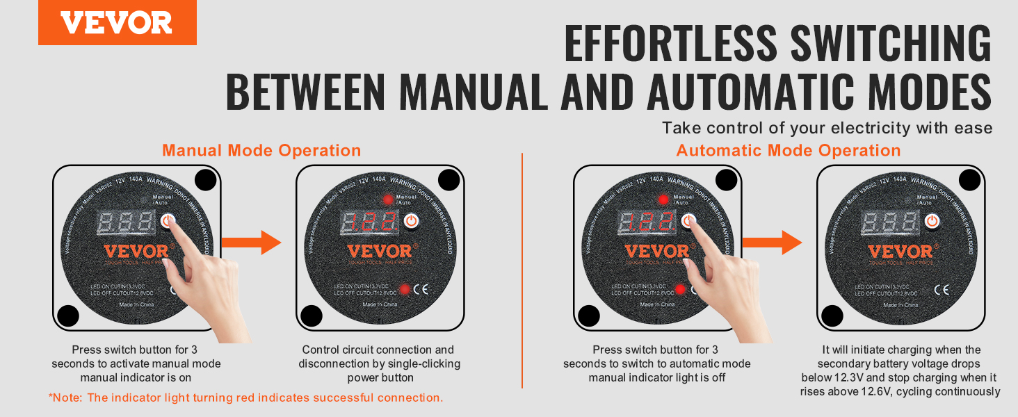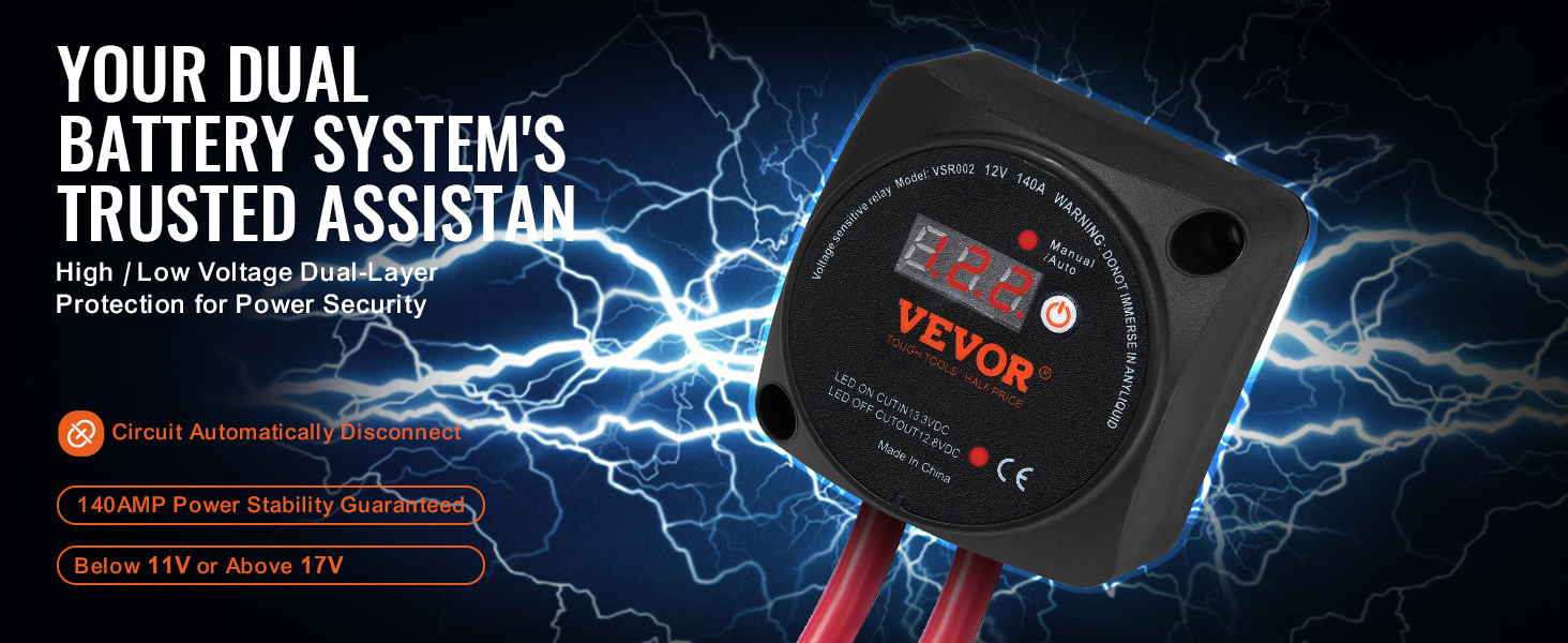 Náš izolátor VSR, navrhnutý pre systémy s dvoma batériami, bez námahy zvládne vaše výzvy v oblasti riadenia obvodov! Vyberte si medzi manuálnym a automatickým režimom pre jednoduché ovládanie. Vďaka LED displeju môžete sledovať stav batérie v reálnom čase a zaistiť bezpečnosť pomocou našej ochrany proti vysokému a nízkemu napätiu.