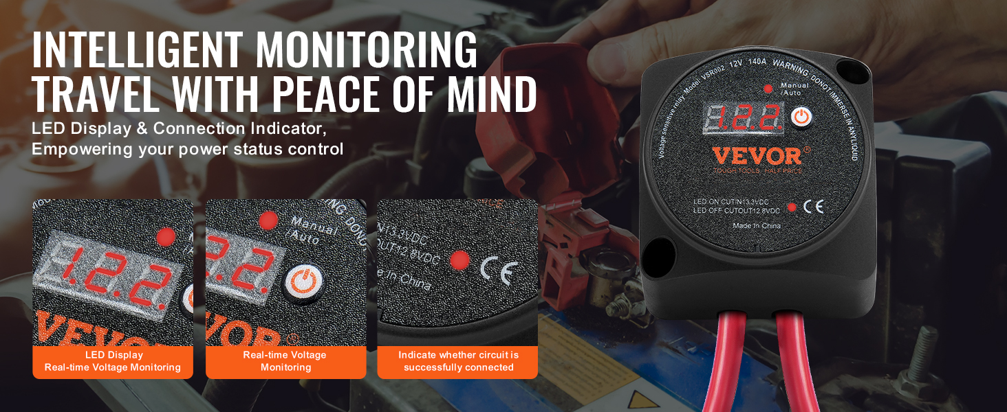 Chráňte svoje batérie s bezkonkurenčným zabezpečením pomocou nášho inteligentného izolátora batérií, ktorý je vybavený ochranou proti vysokému a nízkemu napätiu. Ak je napätie nižšie ako 11 V alebo vyššie ako 17 V, náš inteligentný systém reaguje okamžite - automaticky odpojí obvod, aby sa zabránilo poškodeniu v dôsledku nepravidelností napätia.
