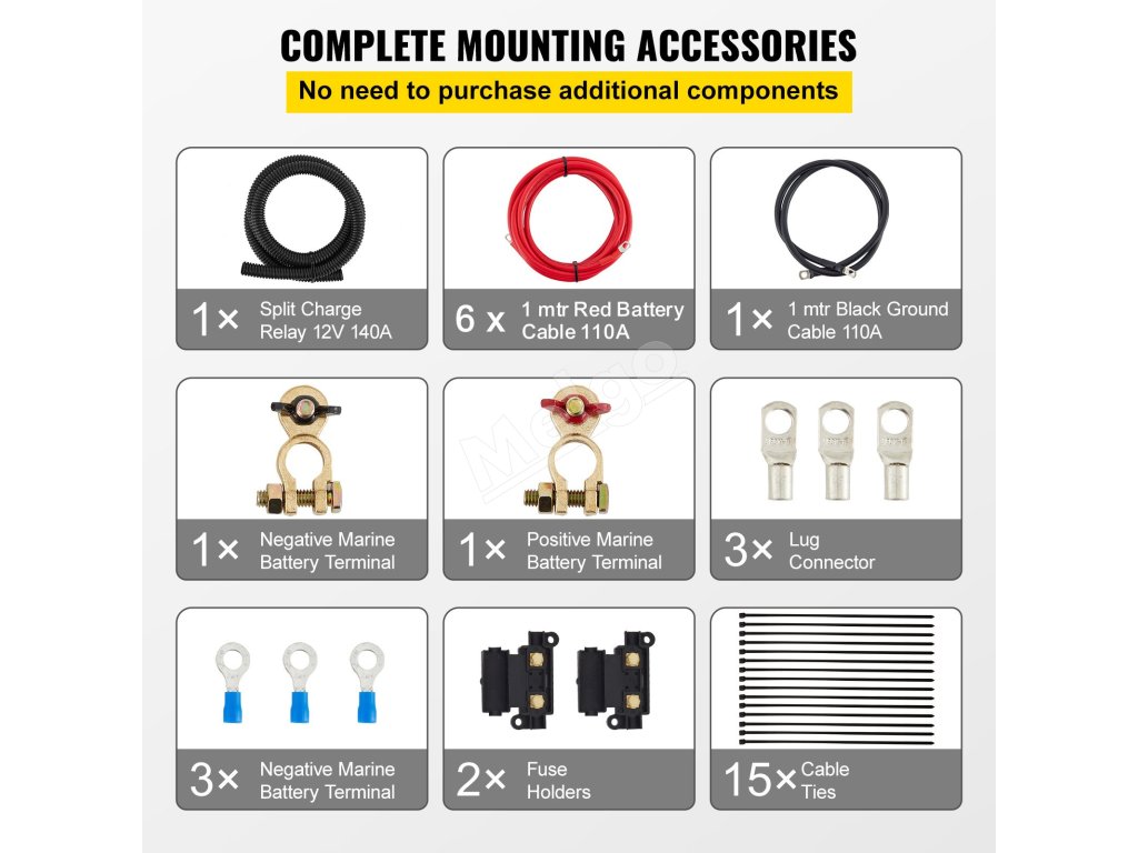 Sada relé pre oddelené nabíjanie batérií 6 m 12 V 140 A vsr