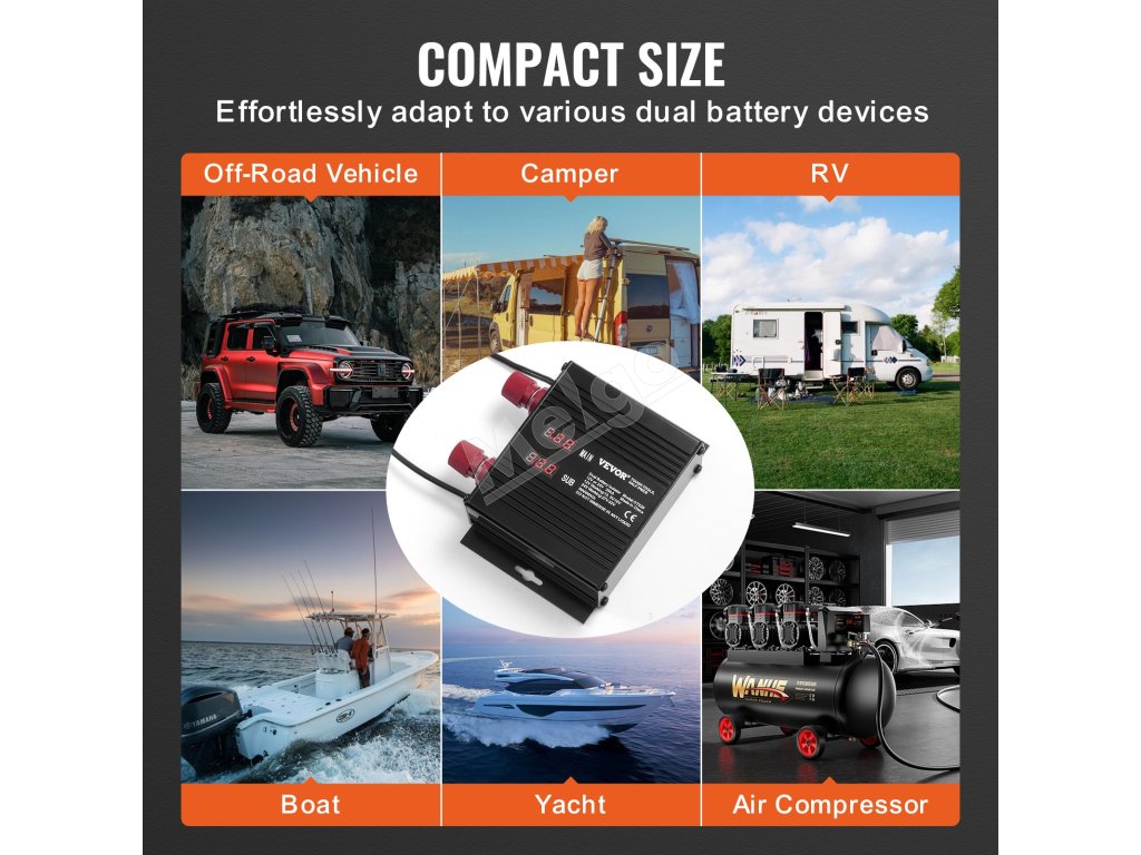 Inteligentný izolátor batérií 250 A, 12V/24V, vsr, s lcd pre auto