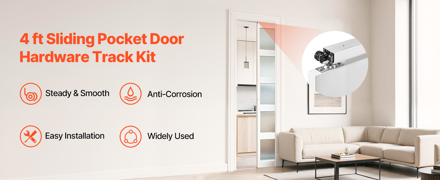 Súprava koľajníc pre posuvné vreckové dvere je navrhnutá tak, aby vyhovovala najbežnejším rozmerom dverí v domácnostiach, čo uľahčuje výber správnej veľkosti bez zložitých meraní. Jej jednoduchá konštrukcia zaisťuje jednoduchú inštaláciu a je vhodná aj pre začiatočníkov.