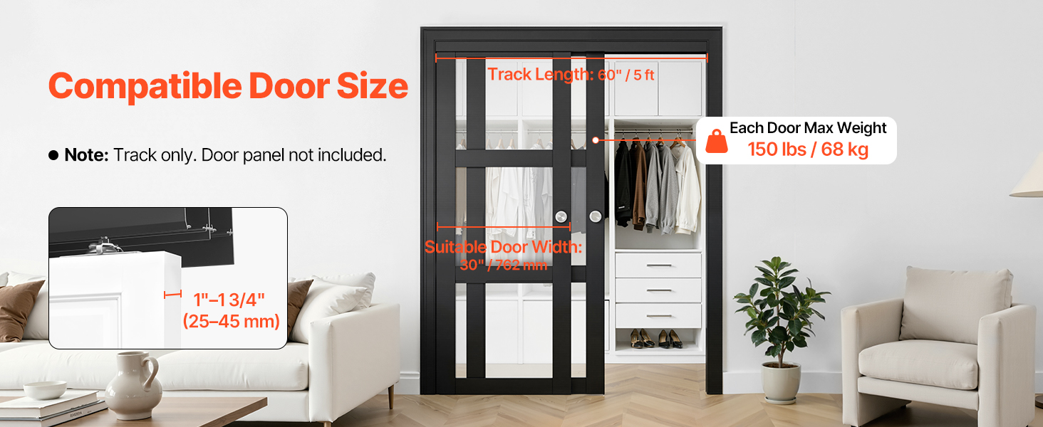 Kovanie bypass pre posuvné dvere 1524 mm 25–45 mm 762 mm 2 dvere