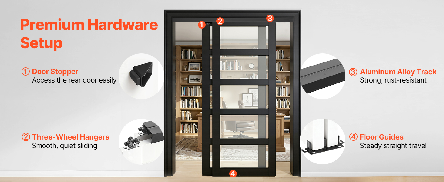 Tento hardvér pre posuvné dvere zaisťuje plynulé a stabilné posúvanie s spoľahlivým ovládaním dverí a dlhou životnosťou. Je ideálnou voľbou pre domáce priestory, kde je dôležitá tichá a plynulá prevádzka.