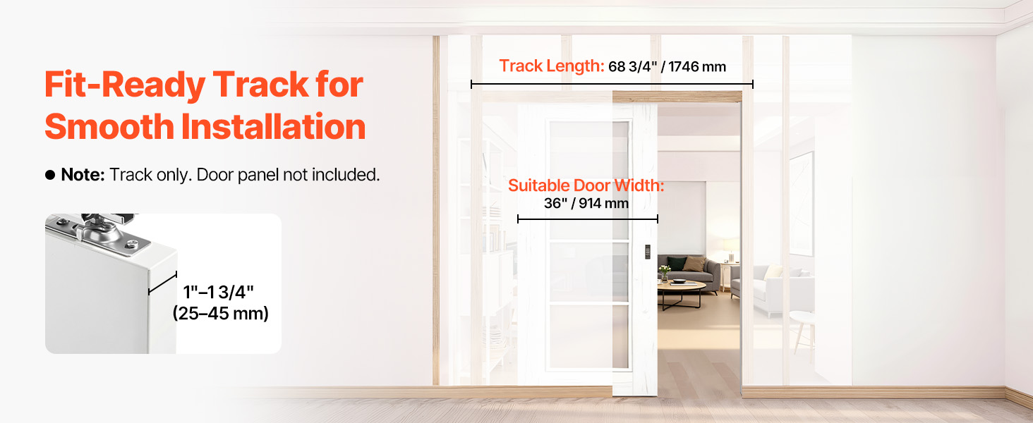 Sada koľajníc pre vreckové dvere 1746mm, mäkké dovretie, 914mm 25–45mm