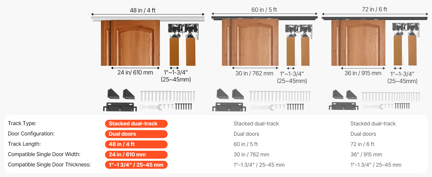 Súprava kovania pre posuvné dvere 1219 mm 25–45 mm 610 mm 2 dvere