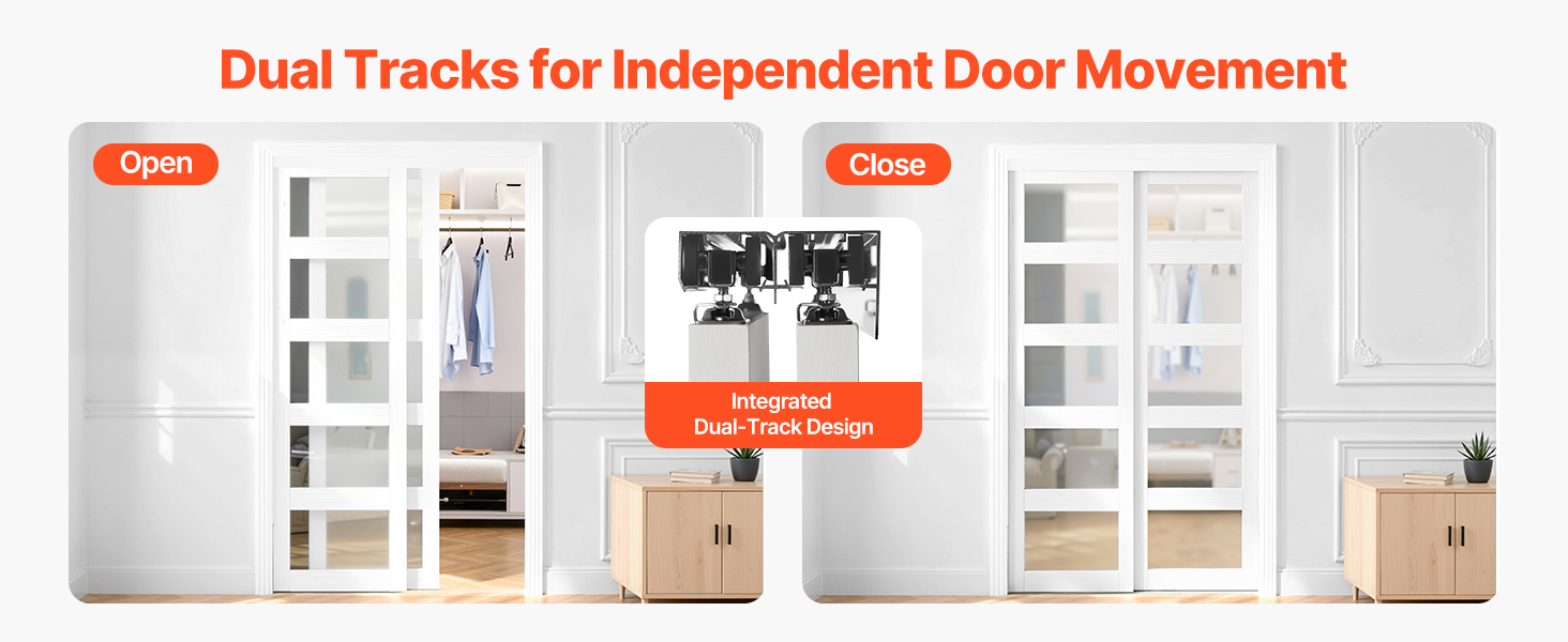 Tento integrovaný súprava kovaní pre posuvné dvere s dvojitou koľajnicou, určená pre posuvné dvere skríň, zvyšuje použiteľnosť v obmedzených priestoroch. Zabezpečuje plynulejšie a prirodzenejšie otváranie a zatváranie, čím uľahčuje a zefektívňuje každodenné usporiadanie a prístup.