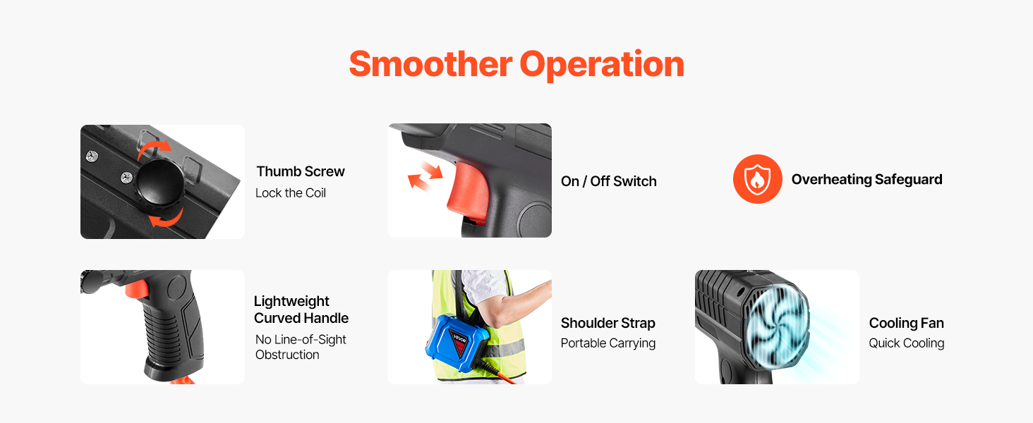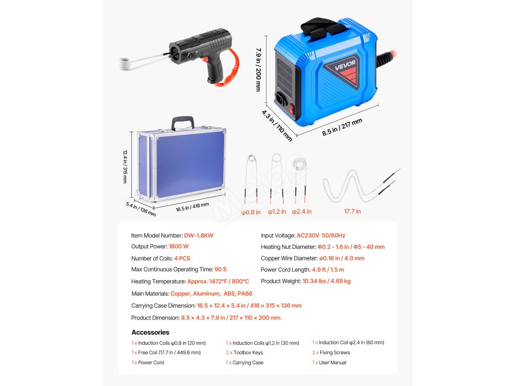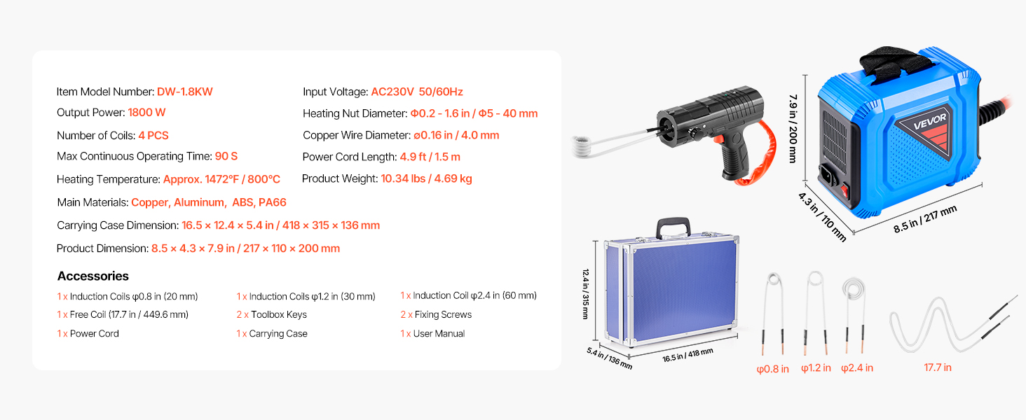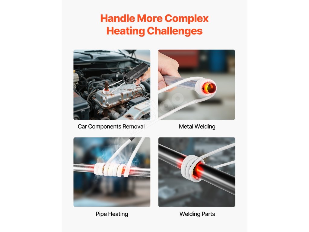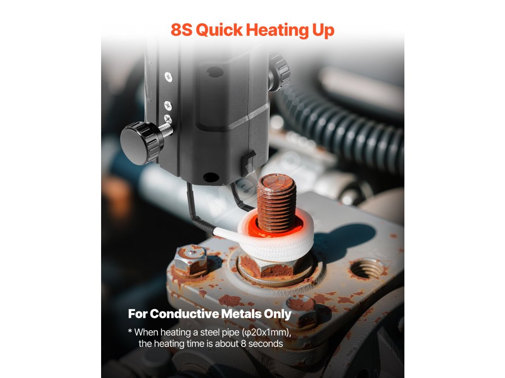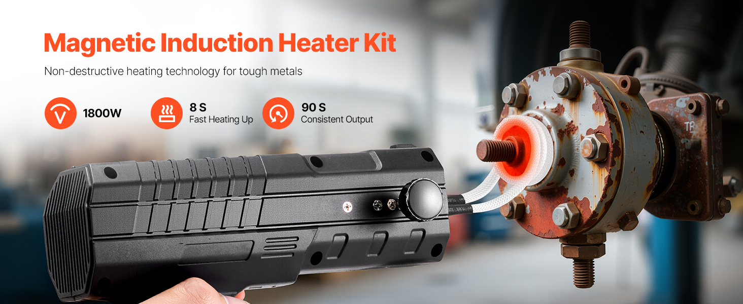 Ručný magnetický indukčný ohrievač poskytuje vysoký výkon až 1800 W, čím ľahko urýchľuje odstraňovanie zhrdzavených skrutiek a matíc. Jeho tepelná stabilita a odolný motor zaručujú dlhodobý výkon.
